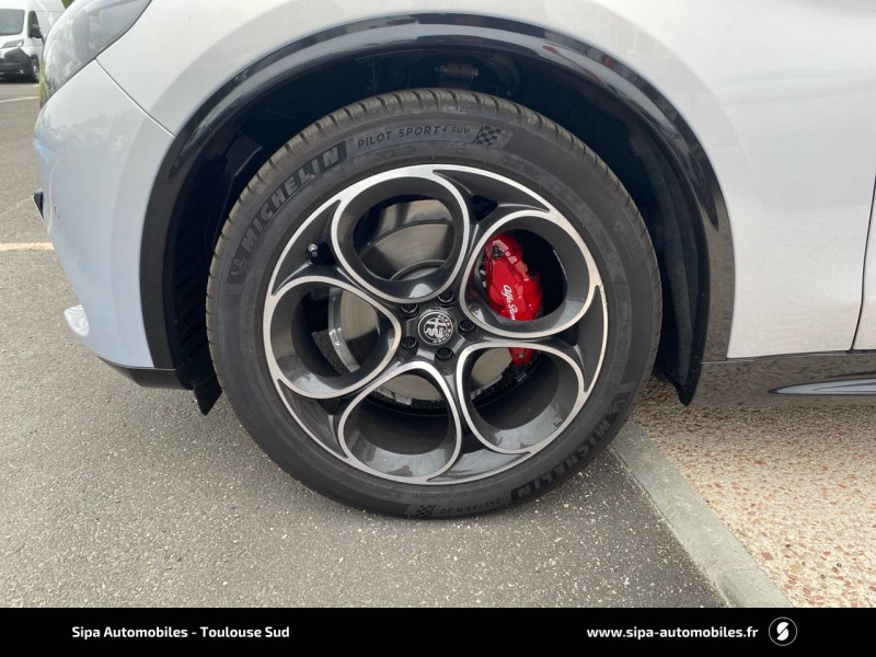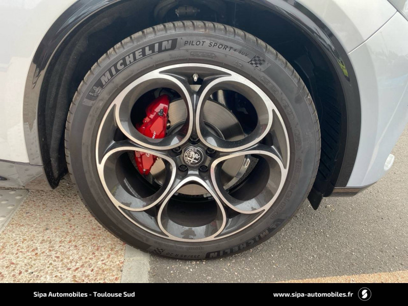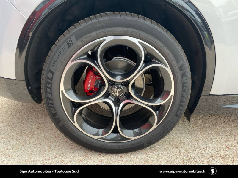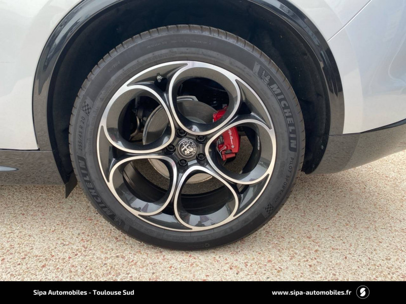 abs, esp, tcs / alfa connected services / badge veloce / barres stabilisatrices renforcées / boîte automatique 8 rapports / buses de lave-glaces chauffantes / caméra de recul avec lignes indicatrices / ciel de toit sombre / cockpit digital 12.3'' personnalisable / contour de vitres noir vulcano / coques de rétroviseurs noires / diffuseur ar veloce / double sortie d'échappement noir / eclairage adaptatif (feux de croisement/feux de route) / etriers de frein rouges brembo / fixation siège enfant de type isofix / inserts en aluminium planche de bord, tunnel central et portières / jantes alliage 20" competizione avec pneumatiques été. dimensions : 255/45 r20 / kit de réparation pneumatiques fix & go / ouverture des portes mains libres avec éclairage des poignées de porte / pack ti sièges sport en cuir, réglage électrique latéral des sièges, sièges av chauffants, réglage électrique conducteur 6 positions + lombaire 4 positions à mémoire, volant chauffant, réglage électrique passager 6 positions + lombaire 4 positions, arches, contours de roues et jupes latérales noir vulcano / palettes au volant en aluminium / peinture pastel rouge alfa / pommeau de vitesse sport gainé de cuir / prises usb frontales + prises usb ar / projecteurs matrix full-led adaptatifs avec fonction anti-brouillard et signature lumineuse / rétroviseur intérieur photochromatique / rotary pad / sélecteur de mode de conduite alfa dna / seuils de portes en aluminium / sièges sport en cuir avec soutien latéral des sièges réglable électriquement / système alfa connect avec écran 8,8" tactile , navigation 3d europe / systeme d'aide à la descente hill descent holder / système d'alertes anticollisions (fcw) avec détection piétons / système d'amélioration de la qualité de l'air / système de détection de fatigue du conducteur / système de détection des angles mort avec détection d'obstacles / système de détection des angles morts avec action corrective / système de freinage intégré (ibs) / système de maintien dans la voie / tapis de sol noirs / v de calandre noir