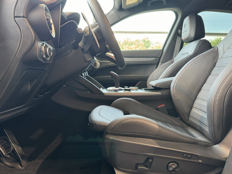 aérateur de climatisation places ar / alfa connected services / badge competizione / buses de lave-glaces chauffantes / caméra de recul avec lignes indicatrices / ciel de toit sombre / cockpit digital 12.3'' / contour de vitres noir / coques de rétroviseurs noires / diffuseur spécifique veloce / double sortie d'échappement noir / eclairage adaptatif (feux de croisement/feux de route) / eclairage diurne (signature lumineuse) à led / etriers de frein noir / fixation siège enfant de type isofix / hayon à ouverture main-libres / inserts en aluminium planche de bord, tunnel central et portières / jantes alliage 21" speciale scuro avec pneumatiques été / kit de réparation pneumatiques fix & go / ouverture des portes mains libres avec éclairage poignées de porte / pack ambiance veloce / palettes au volant en aluminium / peinture pastel rouge alfa / planche de bord en cuir avec surpiqûres rouges et gris / pommeau de vitesse sport / prise de coffre auxiliaire 230v / prises usb frontales + prises usb ar / projecteurs matrix full-led adaptatifs avec fonction anti-brouillard / réglage électrique des sièges av 6 positions / rétroviseur intérieur photochromatique / rotary pad / sélecteur de mode de conduite alfa dna / sellerie cuir sport noir avec surpiqûres rouges et gris / seuils de portes en aluminium / sièges sport en cuir avec soutien latéral réglable électriquement / suspension active alfa / système alfa connect avec écran 8,8" tactile , navigation 3d europe / système audio 900w by harman kardon 14 hp (avec subwoofer) / système audio harman kardon / systeme d'aide à la descente hill descent holder / système d'alertes anticollisions (fcw) avec détection piétons / système d'amélioration de la qualité de l'air / système de détection des angles mort avec détection d'obstacles / système de freinage intégré (ibs) / tapis de sol noirs / v de calandre noir