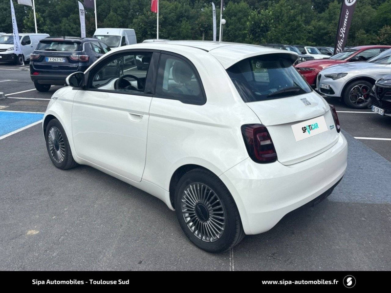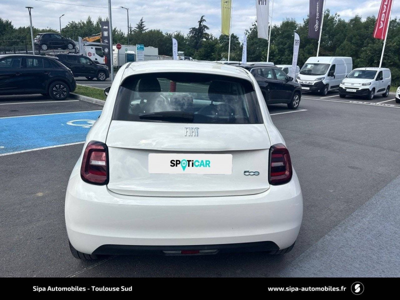 6 hp / abs - antiblocage des roues avec répartiteur de freinage ebd / câble de recharge mode 3 / chargeur embarqué 11 kw triphasé / coques de rétroviseurs couleur carroserie / détails chromés : logo 500 sur calandre et logo fiat sur hayon / ecran couleur tft 7" / esp - contrôle électronique de stabilité avec aide au démarrage en côté "hill holder" / freinage autonome d'urgence avec détection de piéton et de cycliste / frein à main électrique / limiteur de vitesse intelligent avec reconnaissance des panneaux / mopar connect box / pare-chocs peints couleur carrosserie / poignées de portes dissimulées / prise charge rapide (50kw) / système d'alerte sonore au piéton / système d'infodivertissement uconnect 10,25'? avec navigation / volant noir soft touch