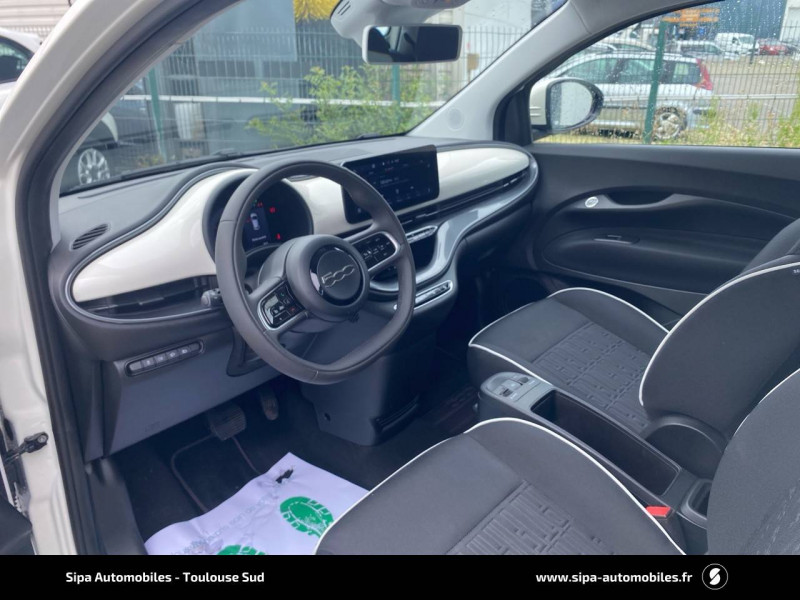 6 hp / abs - antiblocage des roues avec répartiteur de freinage ebd / batterie 23,8 kwh / câble de recharge mode 3 / chargeur embarqué 11 kw (ac) / coques de rétroviseurs couleur carroserie / détails chromés : logo 500 sur calandre et logo fiat sur hayon / ecran couleur tft 7" / frein à main électrique / pare-chocs peints couleur carrosserie / poignées de portes dissimulées / recharge rapide 50 kw (dc) / sellerie tissu seaqual noir + planche de bord couleur carrosserie / système d'alerte sonore au piéton / système u-connect 10,25" (sans nav) / volant avec commandes / volant noir soft touch