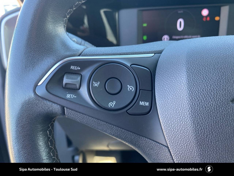 2ème clé rigide / 3ème appui-tête ar / 4 hp / aide actif au maintien dans la voie / alerte anti-somnolence / câble de recharge mode 2 - 3,7 kw green up / calandre opel vizor / chargeur embarqué monophasé 7,4 kw / coque de rétroviseurs extérieurs noires / deux clés pliables avec télécommande / ecran d'instrumentation couleur 7" / ecran tactile 7'' couleur avec bluetooth / frein à main électrique / jantes en alliage 16" 5 double branches, argent / kit anti-crevaison / ligne de contour de vizor chromée / ligne de vitrage chromée / module opel connect / omission du toit contrasté / pack visibilité / phares eco led / plafonnier avec double spot de lecture / poignées de portes intérieures chromées / régulateur et limiteur de vitesse programmable / sécurité enfants aux portes ar / sellerie tissu "sensation" / siège passager réglable dans 4 directions / spoiler ar noir / système isofix aux places ar / sytème anti-collision à basse vitesse et détection des piétons / toit couleur carrosserie / volant 3 branches