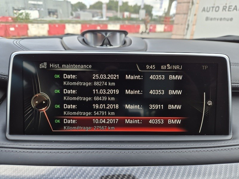 abs, cbc et dbc / accès confort avec ouverture/fermeture sans contact du hayon "smart opener" / affichage tête haute hud couleur spécifique m avec affichage spécifiques / airbags rideaux pour la première et deuxième rangèe de sièges / alarme antivol / antidémarrage ews iv 7 clés sra / boîte automatique sport à 8 rapports avec sélecteur électronique et palettes de changement de rapports au volant / boussole numérique dans l'écran d'information central / bouton de démarrage start/stop sans manipulation de la clé / combiné d'instrumentation "black panel" m avec écran d'information 9,2'', graduation permanente, aiguilles rouge, rétro-éclairage blanc et amblème m / connectivité avancée sans fil avec recharge par induction / construction allégée intelligente bmw efficient dynamics / contrôle d'adhérence en descente (hdc) / contrôle dynamique de stabilité dsc+ avec m dynamic mode avec 3 modes disponibles : dsc on / mdm / dsc off / détecteur de pluie et allumage automatique des projecteurs / diffuseur ar en noir brillant avec éléments décoratifs en night gold / direction à assistance électrique (esp) bmw efficient dynamics / direction servotronic m à assistance variable selon la vitesse (3 modes : comfort, sport et sport+) / ecran d'information central en couleur 10,2'' (26 cm) / etriers de frein peints en bleu avec logo m à l'av / feux de route permanent anti-éblouissement "bmw selective beam" / fixations isofix à l'ar, à droite et à gauche / fonction d'arrêt et de redémarrage automatique du moteur bmw efficient dynamics / hayon monobloc avec commande électrique / inscription du modèle "x6 m" à l'ar / inserts décoratifs en aluminium "trace" / interface bluetooth pour téléphone portable avec port audio usb (avec streaming audio et fonction "music search") / lève-vitres av/ar électriques à commande à impulsion (fonction péage/anticoincement) / navigation multimédia professional / pack adaptative drive / pack advanced full led / prises 12v x 5 (1 x dans le coffre + 1 x dans la console centrale av + 2 x dans la console centrale ar + 1 x dans l'accoudoir central av / projecteurs full led avec lave-projecteurs / régulateur de vitesse avec fonction freinage dans les descentes / rétroviseurs extérieurs spécifiques m aérodynamiquement optimisés, couleur carrosserie à réglage électrique asphériques et dégivrants avec répétiteurs latéraux à led intégrés / sièges av électriques à mémoires conducteur / sièges av sport m avec emblème m / sorties d'échappement rondes doubles à gauche et à droite chromées (diamètre = 90mm) / spoiler ar m couleur carrosserie / stores pare-soleil mécaniques pour vitres latérales ar / surround view / technologie 4 roues motrices intelligente xdrive / toit ouvrant en verre coulissant et entrebâillable électriquement / volant m gainé cuir avec touches multifonctions, 2 touches m drive et palettes de changement de rapports unidirectionnelles "-" / "+"
