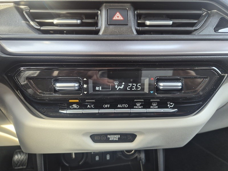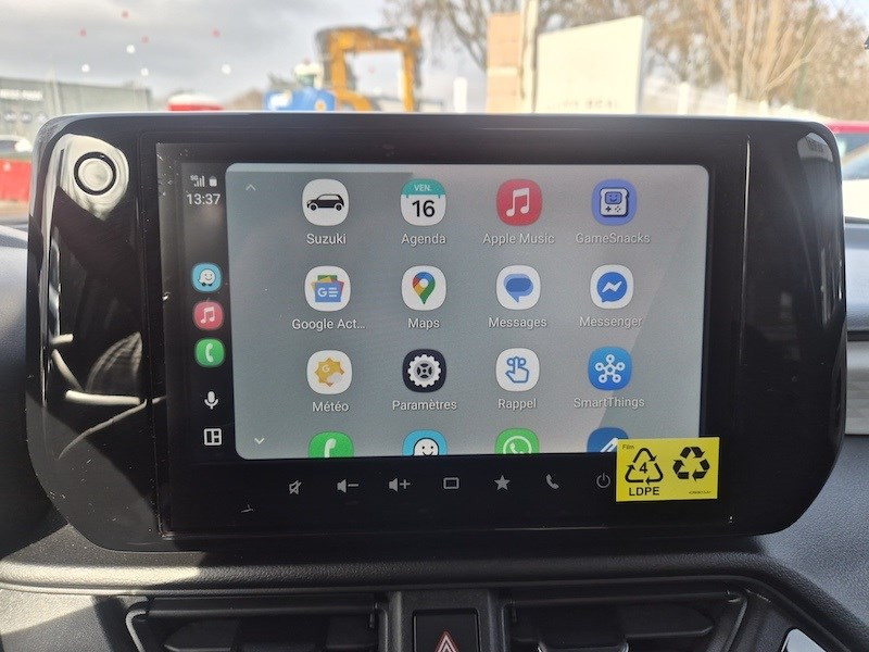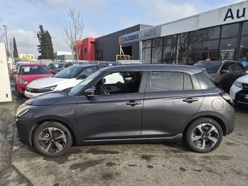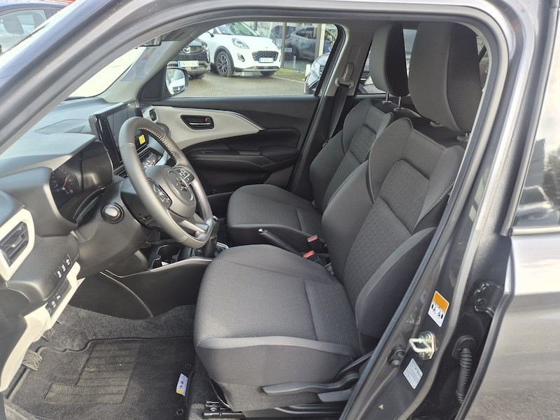 3ème feu stop / abs avec ebd (répartiteur électronique de freinage) / adaptation intelligente à la vitesse avec limiteur de vitesse / aide au maintien dans la voie / alarme de sécurité (portes et capot) / alerte de trafic en marche ar / alerte niveau carburant bas / alerte porte mal fermée / ancrages d'attache pour sièges enfants (x2) / appuis-tête réglables en hauteur et aumônière côté passager / bac de stockage dans les contre-portes av / becquet de toit ar / boîte manuelle / boucliers av/ar et jupes latérales ton carrosserie / buses d'aération aux places ar / cache-bagages rigide / calandre noire laquée en nid d'abeilles / ceintures de sécurité ar 3 points à enrouleur et limiteurs d'effort x 2, 3 points x 1 (centre) / ceintures de sécurité av 3 points à enrouleur et limiteurs d'effort / contrôle de la traction tcs / contrôle du régulateur et du limiteur de vitesse sur le volant / couleur de l?habillage de l?habitacle noir et gris clair / crochet de sac / décor de planche de bord gris clair / détecteurs d'angles morts / dispositif d'ouverture et de démarrage sans clé / eclairage / eclairage de plaque d'immatriculation à led / engine auto stop start system / enregistreur de données d'événements / essuie-glace ar à 1 vitesse + intermittence / essuie-glace av à 2 vitesses avec intermittence réglable / feux de jour led (intégrés dans les projecteurs) / filtre à pollen / fonction "guide me home" / freinage actif d'urgence (dsbs ii) avec détection des piétons, vélos et mot / gestion automatique des feux de croisement / feux de route / haut parleur aux places ar / hybrid shvs (smart hybrid vehicle by suzuki) / instrumentation analogique avec écran central / jantes 16" en alliage léger polies et pneumatiques 185/55 / lame de pare-choc av noire / lecteur de cartes av (3 positions) / montant de portes et de pare-brise de couleur noire / ordinateur de bord avec écran couleur lcd 4.2'' / ornement de la planche de bord gris foncé satiné / ornement des contre-portes gris foncé satiné / ornement du levier de vitesse gris foncé satiné / ouverture à distance de la trappe à carburant / ouverture du hayon electromagnétique / pare-soleil côté conducteur avec porte ticket & miroir de courtoisie / pare-soleil côté passager avec porte ticket & miroir de courtoisie / pédalier rétractable en cas de choc frontal (frein et embrayage) / poignées de maintien côté passager ar x2 / poignées de maintien côté passager av / poignées de porte av et ar ton carrosserie / poignées de portes intérieures chromées / portes bouteille (av x2 et ar x2) / portes gobelet (av x2 et ar x1) / prédisposition pour l'installation d'un éthylotest antidémarrage / prise accessoire 12 v et prise usb / prises avant supplémentaires type-a 2.4 ah et type-c 3.0 ah / projecteurs & feux ar à led / réglage de la hauteur des ceintures de sécurité aux places av / réglage manuel de la hauteur des projecteurs / renforts latéraux dans les portes / repose-pied conducteur / rétroviseurs extérieurs ton carrosserie / sécurité enfant aux portes ar / sellerie tissu noire et grise / signal sonore d?oubli d?extinction des feux et/ou retrait de la clé de contact / signal sonore et visuel de non bouclage des ceinture de sécurité ar / signal sonore et visuel de non bouclage des ceinture de sécurité av / système audio avec hp aux places av et connexion bluetooth / système de désactivation de l'airbag passager av / système de détection de somnolence du conducteur / système multimédia avec écran tactile 9" : caméra de recul, connectivité smartphone sans fil / tweeters av / volant 3 branches avec contrôle audio et téléphonie mains-libre / volant 3 branches gainé cuir