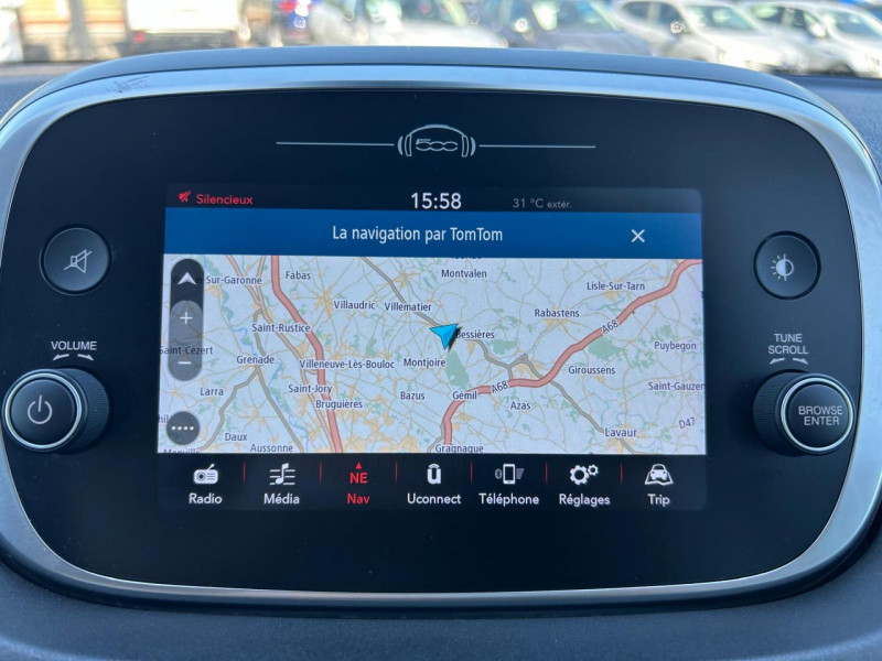 fiat 500x firefly turbo 120 s&s : suv compact essence, bien équipé et entretenu.fiat 500 fiat 500x firefly turbo 120 s&s ? 120 ch ? manuelle ? 2021 ? 87 575 kmdécouvrez ce superbe fiat 500 fiat 500x firefly turbo 120 s&s soigneusement préparé par nos équipes. véhicule certifié, garanti et prêt à partir.points forts :- motorisation firefly turbo 1.0 (999 cm3) de 120 ch : équilibre entre dynamisme et consommation maîtrisée (6,0 l/100 km en cycle mixte déclaré).- finition bien dotée (pack confort) et peinture métallisée gris moda : look soigné et confort au quotidien.- Équipements d'assistance et sécurité complets : caméra de recul, radars avant/arrière, esc, tpms et aide au démarrage en côte.- confort et connectivité : climatisation automatique bi-zone, système uconnect 7' compatible apple carplay / android auto.- jantes alliage 17' black machined et banquette arrière rabattable 40/60 pour plus de polyvalence.Équipements principaux :- barres de toit longitudinales argentées- peinture métallisée gris moda- banquette arrière rabattable 40/60- caméra de recul- climatisation automatique bi-zone- commandes de l'autoradio au volant- contrôle électronique de stabilité (esc)- contrôle de pression des pneus (tpms)- détecteur de pluie et allumage automatique des projecteurs- feux de jour à led- fonction start/stop- frein de stationnement électrique- hill holder (aide au démarrage en côte)- jantes alliage 17' black machined- lève-vitres électriques avant et arrière- limiteur de vitesse intelligent- pack confort (3 appuie-tête arrière, accoudoir central avant, crochet de filet à bagages, plancher de coffre amovible, port usb arrière, réglage lombaire électrique siège conducteur, siège passager réglable en hauteur, tapis de sol)- projecteurs antibrouillard- régulateur de vitesse- rétroviseurs extérieurs électriques et dégivrants- radars de parking avant- radar de recul- siège conducteur réglable en hauteur- système uconnect 7', bluetooth, apple carplay / android autohistorique entretien :carnet d'entretien non renseigné dans le dossier. le véhicule a été contrôlé et bénéficie d'une préparation atelier complète avant livraison.informations sur la préparation, la garantie et les services proposés :- préparation : contrôle technique et révision effectués par nos équipes (véhicule contrôlé, réparations et réglages réalisés si nécessaire).- garantie : garantie commerciale 6 mois (conforme au dossier).- financement : solutions de financement possibles (renseignements et simulation sur demande).- reprise : reprise de votre véhicule ancien possible, évaluation sur rendez-vous.- livraison : livraison rapide ou retrait en agence sur rendez-vous.- autres services : achat en ligne, dépôt-vente, mandat de vente, achat à distance, rachat cash, véhicules d'occasion toutes marques.nos engagements :- véhicule contrôlé et révisé par nos ateliers- garantie commerciale 6 mois- reprise et financement possibles- livraison rapide ou sur rendez-vousnos services : achat en ligne, dépôt-vente, mandat de vente, achat à distance, reprise de votre précédent véhicule, rachat cash, véhicules d'occasion toutes marques.conclusion :disponible immédiatement. pour une visite, un essai ou un devis personnalisé, contactez notre équipe commerciale :bessières automobiles (bessières) ? tél. : 05 61 84 81 59 ? email : [email protected] galea (conseiller) ? mobile : 06 81 99 84 52 ? email : [email protected] également le dossier complet et la galerie photos en ligne : https://renaultportet.fr/fiat-500-fiat-500x-firefly-turbo-120-ss,svoc71.html?vid=2962886