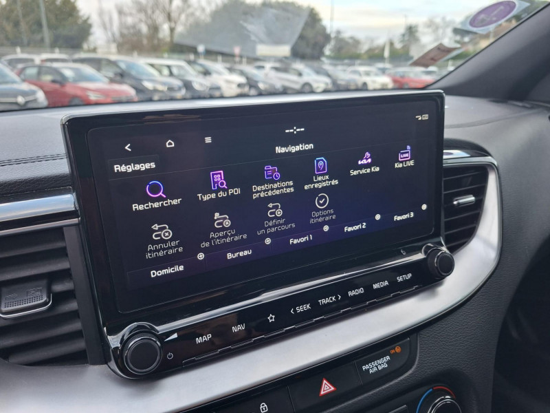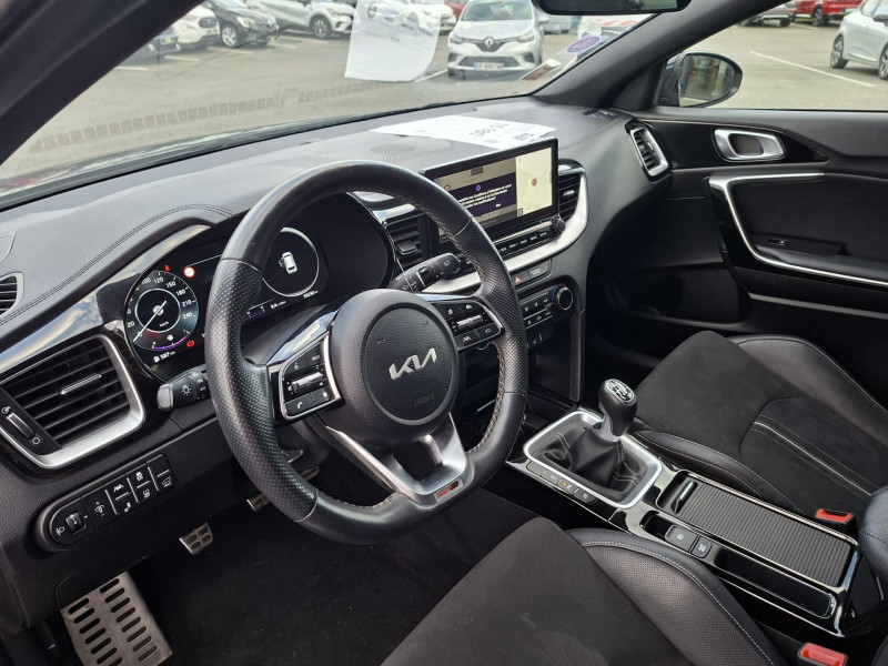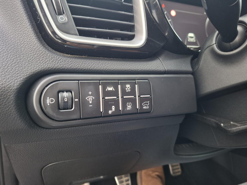 abs avec répartiteur électronique du freinage (ebd) / accoudoir central arrière avec porte-gobelets intégrés / accoudoir central avant coulissant avec rangement / aide au maintien dans la file (lka) / assistance active à la conduite dans les embouteillages / avertisseur de sortie du véhicule / bacs de rangement dans les contre-portes avant et arrière / becquet arrière avec troisième feu de stop à led / boucliers avant et arrière spécifiques gt line / caméra de recul avec lignes de guidage dynamiques, avec fonction switch on/off / combiné d'instrumentation 100% digital 12.3'' / compartiment de rangement pour lunettes / compartiments de rangement sous le plancher de coffre / connectique usb / connectique usb sur la partie inférieure de la planche de bord / contour de calandre aspect chrome satiné et application noir laqué sur grille de calandre / coques de rétroviseurs noir laqué / détecteur de trafic arrière avec fonction freinage (rcca) / direction à assistance électrique asservie à la vitesse / eclairage dans le coffre / ecran central tactile de 10,25" / fixations isofix sur les sièges latéraux arrière / hayon à ouverture électrique mains-libres / inserts noir laqué au niveau de la console centrale et des ouïes d'aération du tableau de bord / kit de dépannage en cas de crevaison / lève-vitres électriques avant et arrière, séquentiels et antipincement / ligne de vitrage chromée / ouverture et démarrage sans clé ?smart key? / pare-soleils avec miroir de courtoisie illuminé conducteur et passager / pédalier et repose-pied aspect aluminium / phares avant full led / plancher de coffre à 2 niveaux / poches aumônières au dos des sièges avant / poignées de portes intérieures finition chrome satiné / pommeau de levier de vitesses en cuir / prise 12 volts sur la partie inférieure de la planche de bord / prise 12v dans le coffre / rails de toit / rétroviseur intérieur électrochrome / sellerie mixte suède-cuir artificiel noir avec surpiqûres grises / siège conducteur à réglages électriques, 4 axes, avec mémorisation (2 positions) / sièges avant à réglage lombaire électrique / spots de lecture avant et arrière / système anti-collision avec détection des angles morts (bca) / système audio à 6 haut-parleurs / système de freinage d?urgence autonome (fca) avec détection des cyclistes / système de freinage d?urgence autonome avec détection des voitures et des piétons (fca) / système de gestion intelligente des feux de route (hba) / système de navigation avec cartographie europe et services connectés kia live offerts pendant 7 ans / système de téléphonie mains-libres bluetooth avec reconnaissance vocale, mode personnalisé et fonction streaming audio / système kia connect - services télématiques offerts pendant 7 ans / témoin d'alerte pour niveau de liquide lave-glace / verrouillage automatique des portières en roulant / volant chauffant / volant cuir avec méplat