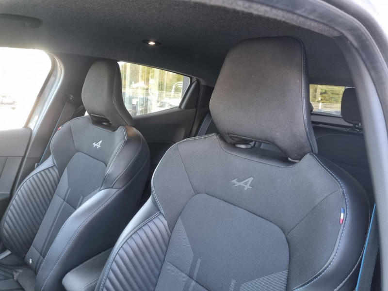 6 haut-parleurs / accoudoir avant, coulissant - avec rangement fermé de 2,2 l / aérateurs latéraux chrome satiné / aide au parking avant et arrière avec indicateur sonore et visuel / airbags rideaux de têtes aux places avant et arrière / alerte attention conducteur / alerte distance de sécurité / alerte oubli des ceintures de sécurité aux 5 places avec détection des occupants / antenne de type requin couleur noir brillant / appel d'urgence renault / appuie-tête av anti "coup du lapin" / assistant de sortie de stationnement perpendiculaire en marche arrière / badges ice black sur les ailes avant et la porte de coffre / bluetooth, 2 usb, 1 aux / boîte à gants fermée, éclairage et refroidissement, avec abattant à ouverture douce (8,4 l) / bouclier avant sport lame f1 gris schiste satin / canule d?échappement chromée ovale / carte renault avec accès et démarrage mains-libres avec fermeture à l?éloignement / ceinture centrale arrière 3 points, avec prétensionneur / ceintures de sécurité av et latérales ar à prétensionneurs et limiteurs d'effort / coiffe de planche de bord en noir, avec matériau moussé / commutation automatique des feux de route / compteur avec écran conducteur 10? personnalisable / console centrale avant flottante, avec gainage en matériau soft / désactivation manuelle de l'airbag passager / diffuseur arrière peint en gris schiste / direction assistée électrique variable / easy link 9,3? avec navigation : radio et navigation avec écran tactile 9,3? haute résolution, finition brillante antireflet (compatible avec android auto et apple carplay) / eclairage intérieur avant et arrière avec 4 liseuses led / entourage de vitres latérales noir brillant / entourage levier de vitesses chromés / feux arrière à led avec signature lumineuse en forme de c avec effet profondeur / feux de jour à led intégrés aux projecteurs / freinage actif d?urgence, avec détection des voitures, motos, piétons, cyclistes (jour et nuit) / grille inférieure de calandre en nid-d?abeilles / inserts décoratifs sur le volant à effet "chromé-satiné" / jantes alliage 17? «la flèche» (cabochon gris schiste/bleu selon couleur carrosserie) / joncs noirs grand brillant dans le bandeau supérieur de calandre / jupe de bouclier arrière gris schiste satin / kit de gonflage de pneumatiques / logo renault ice black, avec bandeau supérieur de calandre noir brillant / logo sur le volant / mode eco avec bouton d'activation / montants latéraux en noir brillant / ornements latéraux chromés / pack ambiance esprit alpine / plancher de coffre mobile / poignées arrière intégrées noir brillant / poignées de porte avant couleur carrosserie / pommeau de levier de vitesse revêtu textile enduit grainé noir / prévention survitesse / projecteurs avant 100% à led performance éclairage renault led pure vision avec faisceau allongé et élargi / protections inférieures des portes gris schiste / réception radio numérique (dab+ et traditionnels fm/am) / renault multi-sense, personnalisation des modes de conduites et ambiance intérieures (3 mode pré-définis: my sense, eco, sport) / rétroviseur intérieur électrochrome sans contour / sellerie en tissu noir, surpiqûres bleues, et broderie en forme de a sur le dossier et étiquette drapeau français / service auto-update - 3 ans inclus / services de navigation connectée - 3 ans inclus / sièges avant esprit alpine, avec soutiens latéraux augmentés, logo alpine et étiquette bleu/blanc/rouge / système d'appel en cas de panne : b-call / véhicule connecté 4g avec pack de données inclus pendant 3 ans / vitres avant électriques avec descente et remontée à impulsion / volant textile enduit grainé fraganza perforé, signature esprit alpine, surpiqûres bleu, blanc, rouge