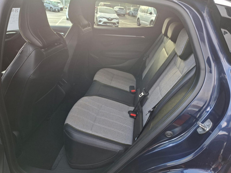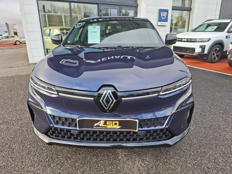 aérateurs arrière / airbag central entre les sièges avant / airbags frontaux conducteur et passager (déconnectable côté passager) / alerte de survitesse / alerte distance de sécurité / appel d'urgence renault: appel automatique en cas d'accident ou bouton sos pour appel (112) en cas d'urgence / assistant de maintien de voie avec direction active et avertisseur de sortie de voie / avertisseur sonore pour piétons / bac rangement de câble de recharge dans le coffre / câble mode 3 type 2 pour borne de recharge domestique et publique (5 m) / ciel de pavillon noir / commutation automatique des feux de route/croisement avec détecteur antibrouillard / décoration haut de planche de bord en alcantara / direction assistée électrique avec assistance variable / eclairage au sol avec projection de logo par technologie led / fixations de siège enfant i-size à l'arrière / frein de parking électrique avec fonction auto-hold / freinage actif d?urgence avec détection piétons (aebs city + inter-urbain + piéton) / freinage régénératif (4 niveaux) réglable par palettes au volant / jantes aluminium 20? soren / lécheurs de vitres chromés / lecture des panneaux de signalisation avec réglage automatique de la vitesse du régulateur contextuel / liseuses pour les sièges avant à led / openr link 12? avec navigation : système multimédia connecté avec google intégré / pack city / pack extérieur look sport / pack infotainment (google play avec 3gb inclus) / pack navigation (google maps avec fonctionnalités dédiées à l'électrique et google assistant) inclus pendant 5 ans / pack remote services (via l'application my renault) inclus pendant 5 ans / panneaux de porte en alcantara / planche de bord textile recyclé / poignées de porte avant affleurantes, électriques et automatiques / projecteurs antibrouillards avec éclairage adaptatif / projecteurs avant performance 100 % led : renault led pure vision / réglage électrique des lombaires pour conducteur / réplication smartphone compatible android auto & apple carplay / rétroviseur intérieur électrochrome sans contour / renault multi-sense : personnalisation des modes de conduite et ambiance lumineuse intérieure (perso / comfort / sport / eco) / sellerie tissu recyclé gris avec bandeau similicuir noir et surpiqûres jaunes / signature lumineuse arrière traversante 3d avec effet moirage / signature lumineuse full avant / système de détection de la somnolence du conducteur / tableau de bord avec écran numérique haute définition 12,3? / traitement sonore arkamys auditorium avec 6 haut-parleurs / volant chauffant