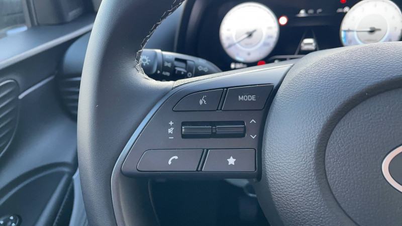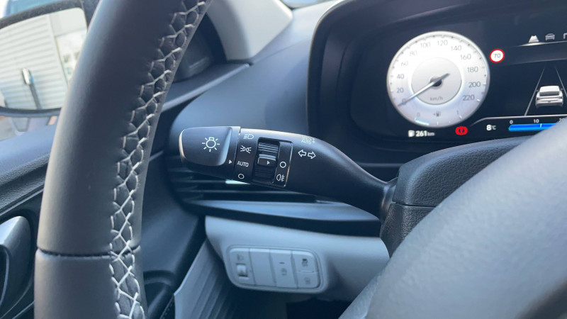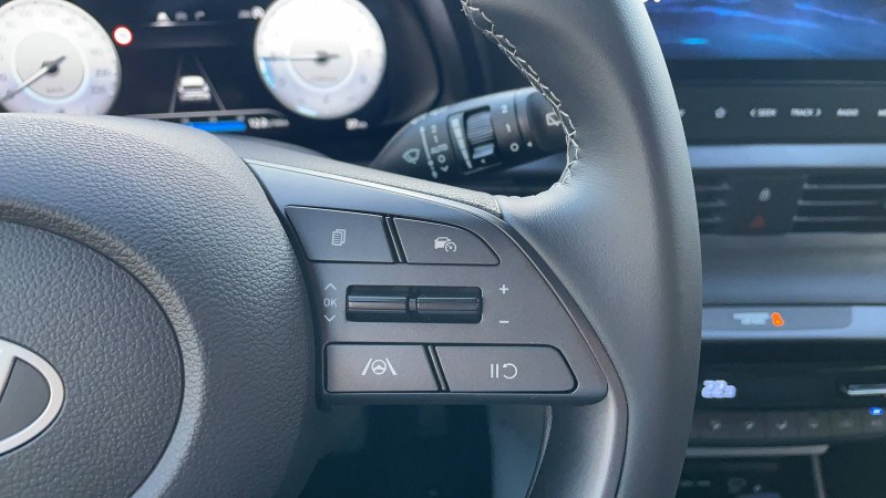 6 airbags: frontaux conducteur et passager (déconnectable côté passager), latéraux av, rideaux av et ar / abs avec ebd et esp / accès mains-libres et démarrage sans clé / alerte de présence de passager ar / assistance active au suivi de voie / boîte de vitesses manuelle à 6 rapports / calandre noir laqué / chargeur sans fil pour téléphone compatible / climatisation automatique avec capteur désembuage automatique / compteurs numériques 10,25" / console de rangement sous accoudoir av / contrôle de trajectoire électronique (esp & vsm) / détection de fatigue du conducteur / ecall : appel d'urgence automatique aux services de secours avec géolocalisation du véhicule / eclairage d'ambiance personnalisable à led / eclairage d'habitacle à led / ecran couleur tactile 10.25" / feux av bi-led avec éclairage additionnel en virage / feux de route intelligents / filet de coffre / freinage d'urgence autonome avec reconnaissance piétons / intérieur bi-ton noir et gris clair / jonc de vitres chromé / peinture mangrove green / plancher de coffre modulable / poche aumônière dans le dossier du siège passager av / poignées de portes grain métal / porte-gobelet av / port usb-c de recharge à l'ar / port usb-c de recharge à l'av / rétroviseurs intérieur jour/nuit automatique / sécurité enfants sur portes ar / services connectés bluelink avec carte sim incluse: transmission de destination au système de navigation à distance - géolocalisation du véhicule - historique des trajets - statut du véhicule (portes, moteur, ventilation) - diagnostic services bluelink pro offerts pendant 6 mois et services bluelink lite offerts pendant 10 ans après la date de mise en circulation du véhicule. les fonctionnalités à distance s'effectuent via l'application depuis un téléphone compatible, hors frais de connexion. / skis av et ar noir laqué / système anti-patinage (tcs) / système audio rds/dab compatible mp3 avec connexion usb-a, 6 hp / système de navigation europe avec programme de mise à jour à distance et services hyundai live: information trafic, carburants, emplacements de stationnement, météo, points d'intérêt et zones de danger. mises à jour à distance incluses pendant 3 ans. / système isofix aux places latérales ar / verrouillage automatique des portes en roulant / vitre électrique séquentielle côté conducteur / volant et levier de vitesse gainés cuir