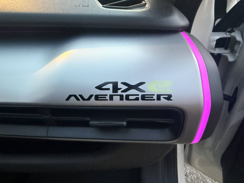 aide à la descente (hill descent control) / airbags frontaux et latéraux conducteur et passager, airbags rideaux av/ar / assistance à la conduite semi-autonome / badges extérieurs jeep et avenger noirs / barres de toit longitudinales noires / boîte de vitesses robotisée à double embrayage 6 rapports / chargeur sans fil pour smartphone / combiné d'instrumentation numérique 10,25'' / commutation automatique feux de route/feux de croisement / contrôle de la traction (tcs) / couvercle magnétique pour le rangement de la console centrale / crochet de remorquage ar / eclairage d'ambiance multi-colore à led / eclairage extérieur d'accueil et d'accompagnement / esp - système de régulation de comportement dynamique / freinage autonome d'urgence avec détection piétons et cyclistes / frein de stationnement électrique / insert de planche de bord peint gris silver / jantes alliage 17" noir mat avec pneus m+s / 3pmsf - logo jeep coloris vert 215/60 r17 100 v / kit de gonflage (fix & go) / pare-chocs av et ar spécifiques / plancher de coffre modulable et réversible / plaque de protection sous châssis (av) / poches aumônières au dos des sièges av / poignées de porte couleur carrosserie / prédisposition attelage / prise usb-c au 2e rang / projecteurs antibrouillard à led avec fonction cornering / projecteurs jeep performance led / rétroviseur intérieur électrochrome sans contour / révision tout 1 an ou 25 000 km / selec-terrain à 4 modes de conduite auto, sable/bouge, neige, sport / sellerie mixte tissu/tep noir/gris lavable / services connectés uconnect services (12 mois gratuit) / siège conducteur à réglages manuels 6 voies / siège passager à réglages manuels 4 voies / spots de lecture av et ar à led / système multimédia àécran tactile uconnect 10,25'' avec apple carplay, android auto sans fils / tapis de sol av et ar / transmission intégrale 4xe / vitres av et ar électriques et séquentielles / volant en tep