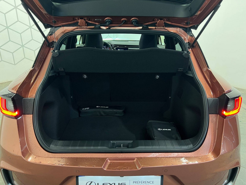 airbag pour les genoux (conducteur) / antenne de toit type aileron de requin / appuie-tête ar à 2 réglages manuels / appuie-têtes av à 2 réglages manuels / avertisseur sonore piétons (avas) / boîte automatisée a variation continu / bouton de désactivation de l'airbag (passager av) / calandre trapézoïde avec garniture argentée / capteurs de stationnement av et ar et ar intelligents (ics) / cléélectronique (smart key) / clignotants av à led / climatisation automatique bi-zone avec contrôle à distance, recirculation automatique et purificateur d'air / commandes montées sur le volant, système audio/affichage/téléphone/reconnaissance vocale/drcc/lta / contrôle de stabilité anti-roulis pour remorque / coques de rétroviseurs extérieurs noires / couvre-coffre, rabattable manuellement / eclairage d'ambiance monocolore / esp (direction assistée électriquement) / essuie-glace av à détecteur de pluie / feux av à led simple lentille avec réglage manuel de la hauteur du faisceau et feux automatiques (ahb) / feux de détresse automatiques (fhl) / feux de stop actifs / fixation i-size, sièges ar gauche et droit / jantes en alliage 18" gris foncé avec finition usinée avec pneumatiques 225/55 r18 / kit de réparation des pneus / lave caméra / lexus safety system+ 3 : assistance à la conduite proactive (pda) lecture automatique des panneaux de circulation (rsa), régulateur de vitesse dynamique (drcc) avec rédution de la vitesse en courbe, système de maintien dans la file de circulation (lta), système de sécurité pré-collision (pcs) avec détection diurne et nocturne des piétons et cyclistes, des motos (de jour uniquement), détection des intersections (ita), correction active de trajectoire (esa) et système de freinage d'urgence (edss) / mode ev (100 % électrique) / moniteur d'angle mort (bsm) avec avertisseur de circulation ar intelligent (rctab) / moniteur de surveillance du conducteur (driver monitor) / moulures de cadres de vitres latérales en acier inoxydable argenté / moulures de portières noires / pare-chocs ar avec échappement dissimulé / pare-chocs av et ar avec garniture argentée / peinture bi-ton avec rétroviseurs extérieurs et toit peints en noir / plaques de seuils de portes av en résine avec insert métallique, avec inscription lexus / pommeau de levier de vitesse gainé de tahara / porte-gobelets av / prétensionneurs de ceintures de sécuritéà l'av et aux places ar gauche et droite / prise de courant 12 v à l' av / prise de courant 12 v dans le coffre / rappel visuel et sonore pour ceintures de sécurité, sièges av et ar / rétroviseur intérieur électrochrome / rétroviseurs extérieurs avec fonction recul et fonction électrochromatique (côté conducteur) / safe exit assist (sea)- assistant de sortie du véhicule / sélecteur de mode de conduite eco/normal / siège passager av à 6 réglages manuels / support lombaire à 2 réglages, siège conducteur / surpiqûres tatami double ligne rouge, avec double couture sur les rembourrages / système antivol avec antidémarrage / alarme sonore / capteur d'intrusion / système audio premium à 6 hp / système d'appel d'urgence (ecall) / système de contrôle actif du son (anc) / système de contrôle de la pression de gonflage des pneumatiques (tpws) avec localisation automatique / système de freinage, stabilité, direction et d'antipatinage : abs, bas, ebd, ecb-r, epb, eps,trc,vsc / système de surveillance du conducteur (driver monitor) / système multimédia lexus link connect : ecran tactile 9,8", intégration smartphone (apple carplay sans fil et android auto), services connectés lexus link+, système de navigation basé sur le cloud (pendant 4 ans) / tableau de bord garni de tahara / vitrage anti uv et isolant / vitres latérales ar et lunette ar surteintées / vitres latérales av à traitement acoustique / volant à 3 branches, revêtement tahara