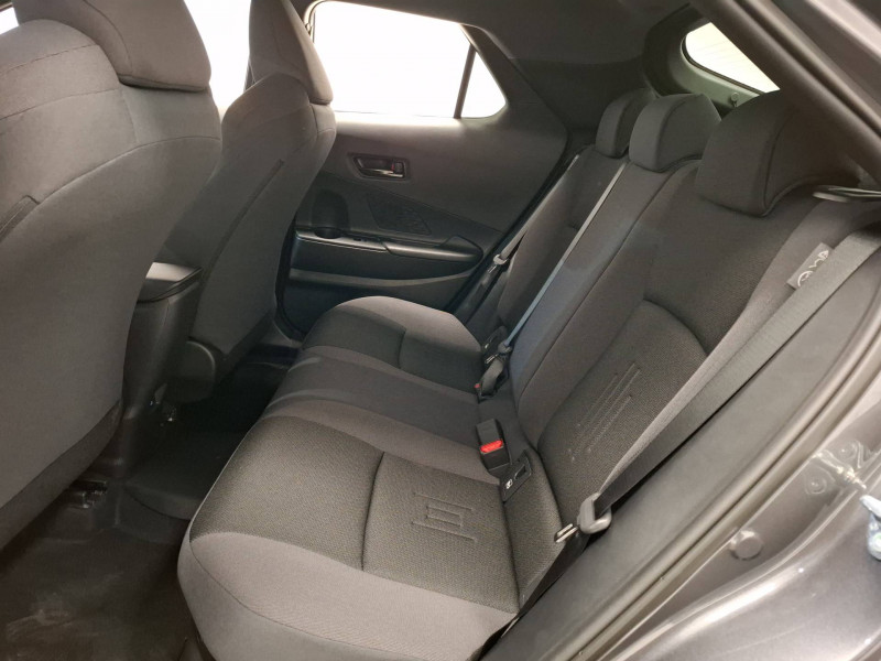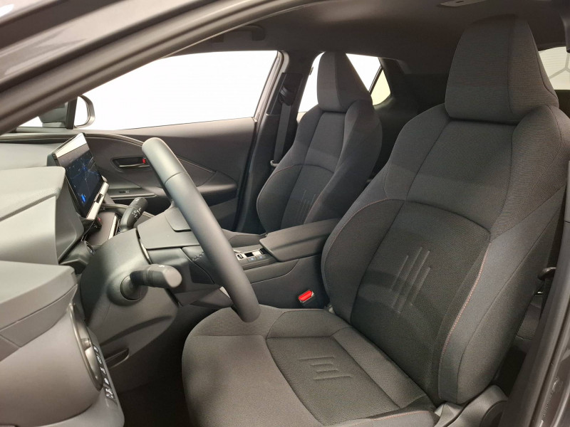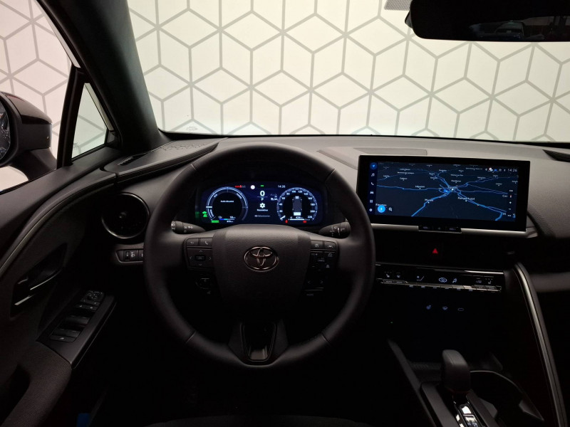 6 hp / activation automatique des feux de détresse ar (fhl) / aide à la sortie sécurisée (sea) le système vous aide à prévenir les accidents en surveillant les autres usagers de la route qui s'approchent par l'arrière. lorsqu'il détecte la présence d'un cycliste ou d'un véhicule, un indicateur lumineux s'affiche dans les rétroviseurs extérieurs et sur l'écran multi-informations et une alarme sonore alerte les occupants. / alarme avec fonction antidémarrage / assistant visuel de conduite (dmc) ce système utilise une caméra située audessus du volant pour surveiller le niveau d'alerte et l'état du conducteur. le système envoie un avertissement s'il détecte un état anormal, comme de la fatigue. ces activités sont utilisées pour améliorer la performance du système d'arrêt d'urgence autonome (edss) à travers la détection précoce de la distraction. / avertisseur d'angles morts (bsm) lorsque les capteurs détectent un véhicule dans votre angle mort latéral, un indicateur lumineux s'éclaire sur le rétroviseur extérieur correspondant. si vous mettez votre clignotant afin d'indiquer un changement de voie alors qu'un véhicule est dans votre angle mort, un indicateur lumineux apparaît dans le rétroviseur correspondant pour vous avertir du danger. / avertisseur de circulation ar (rcta) cet avertisseur vous permet grâce aux capteurs d'angles morts de repérer un véhicule arrivant de côté quand vous sortez en marche ar d'une place de parking. s'il détecte un risque de collision, le système freine automatiquement et stoppe le véhicule. / boîte automatique à variation continue / câble de recharge mode 2 (type 2) 1,8 kw / 6 mètres (domestique) / câble de recharge mode 3 (type 2) 22kw / 7,5 mètres (wallbox) / carrosserie monoton / coffre avec plancher surélevé / compteur numérique personnalisable 12,3" / contrôle de traction (tcs) / eclairage d'ambiance intérieur monochrome éclairage non personnalisable et non interactif : cave à pieds / rangement passager / ecrous antivol / electrostabilisateur programmé (esp) / essuie-glaces av avec détecteur de pluie / feux full led (av/ar et antibrouillard) / filet coffre / jantes en alliage 18" bi-ton gris anthracite mat et aluminium / kit de réparation anti-crevaison / kit de sécurité / montants b de portes noir laqué / optiques av full-led / pare-brise chauffant (sous les essuie-glaces uniquement) / poignées de portes affleurantes / prise 230 v dans le coffre / programme "toyota experience" / radars de stationnement av et ar (pksb) lorsque vous roulez à basse vitesse ou en marche ar, les radars permettent de détecter des objets statiques (obstacles, murs...) ou en mouvement (véhicules traversant à l'ar), le système de freinage de l'aide au stationnement fournit alors une assistance pour réduire l'impact. / rétroviseur intérieur électrochromatique / rétroviseurs extérieurs avec éclairage au sol / sacoche de rangement pour le câble de recharge / sellerie tissu bi-ton gris anthracite avec surpiqûres blanches / services connectés de contrôle à distance mytoyota (inclus 4 ans) / services connectés standards mytoyota (inclus 10 ans) / seuils de portes en aluminium / siège conducteur avec support lombaire électrique / siège passager réglable manuellement en hauteur / système d'appel d'urgence automatique "e-call" / système de rappel pour les sièges ar (rsrs) / système d'ouverture/fermeture et démarrage sans clé "smart entry & start" / système multimédia toyota smart connect : Écran couleur tactile 8 haute définition, connectivité bluetooth, usb et radio, fm et dab (digitale), système de connectivité smartphone apple carplay et android auto (sans fil), services intelligents dont navigation connectée avec infotrafic en temps réel, mises à jour cartographiques, assitant vocal hey toyota et recherche de points d'intérêts (inclus 4 ans) / toyota safety sense : système de sécurité précollision avec détection des véhicules, piétons (jour/nuit) et cyclistes, actif également dans les intersections (pcs), alerte de franchissement de ligne avec aide au maintien dans la file, assistant de trajectoire et détecteur de fatigue (lta), régulateur de vitesse adaptatif intelligent allant jusqu'à l'arrêt (acc), lecture des panneaux de signalisation avec limiteur de vitesse (rsa) et gestion automatique des feux de route (ahb), système d'arrêt d'urgence autonome (edss) / vitrage feuilleté insonorisé / volant chauffant / volant gainé de matière synthétique