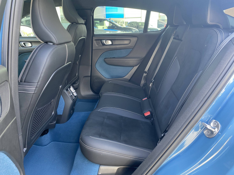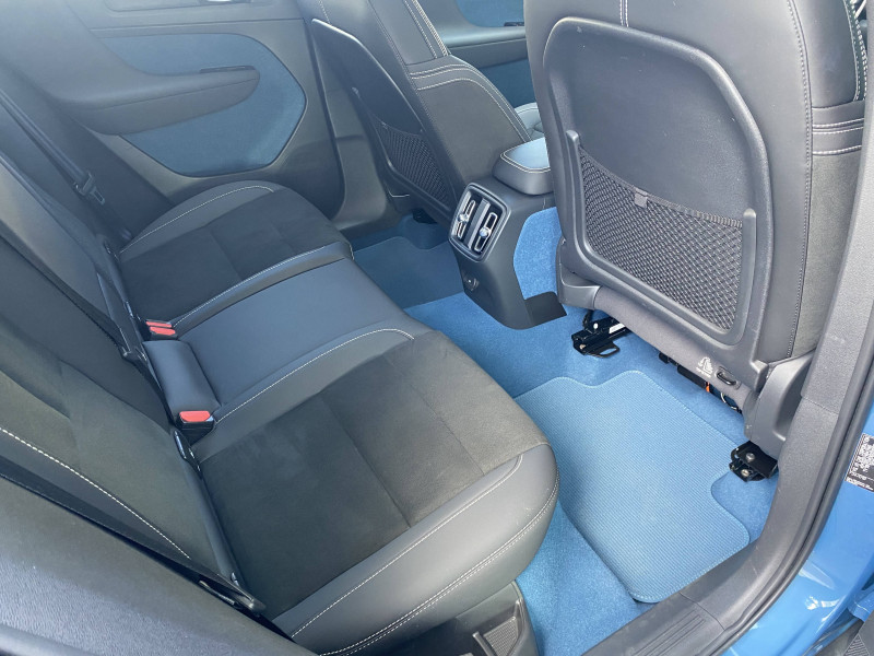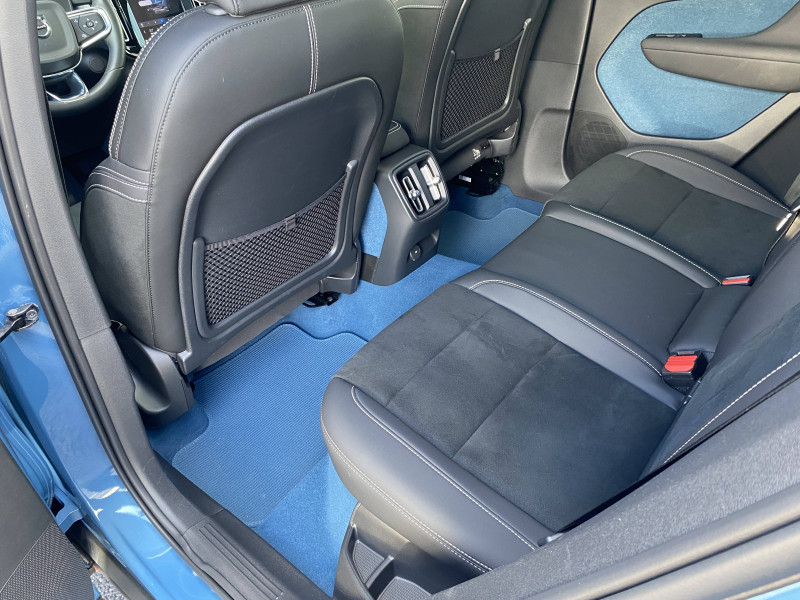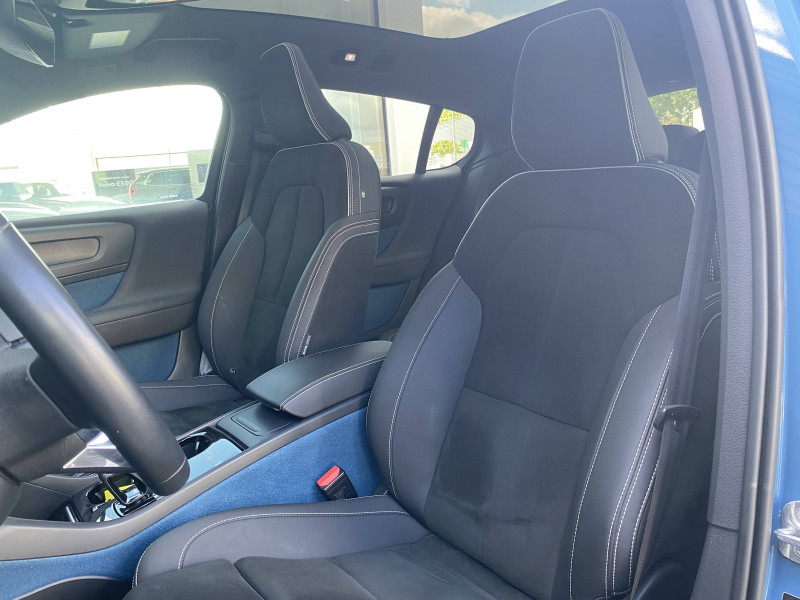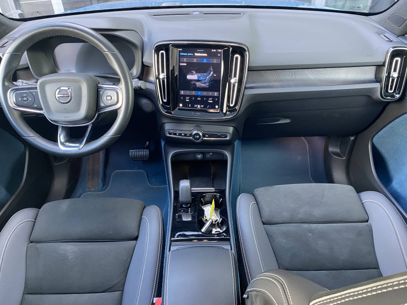 2 porte-cintres / airbag passager désactivable avec témoin d'indication (on/off) / airbags conducteur et passager à déclenchement différencié / alerte vigilance conducteur (driver alert control) informe le conducteur lorsque le système remarque qu'il est nécessaire de porter plus d'attention sur le trafic ou que la conduite semble anormale. si le conducteur ne réagit pas, alors le véhicule pourra effectuer un arrêt de sécurité / application volvo cars / appuis-tête ar rabattables électriquement depuis l'écran central / assise des sièges av extensible manuellement / assistance à l'évitement des piétons et des cyclistes / badge recharge twin sur le hayon / bas de caisse et passages de roues anthracite / câble de recharge de 7 mètres / 10 a. pour prise secteur / calandre av pleine couleur carrosserie / caméras surround view (vision panoramique à 360°) incluant caméra av et caméra de recul / ceintures de sécuritéà inertie à 3 points d'ancrage (sur les 5 sièges) / city safety, système d'anticipation de collision intelligent détection des véhicules, cyclistes, piétons et grands animaux avec freinage automatique à pleine puissance, détection des véhicules aux intersections avec freinage automatique à pleine puissance, avertissement lumineuse et sonore, préparation des freins et ceintures de sécurité av / cleanzone : filtre à charbon de climatisation multi-actif / climatisation automatique bi-zone (incluant ouïes d'aération à l'ar) / coffre sous le capot av d'une capacité de 31 litres / combiné d'instruments digital 12,3" personnalisable, nouvelle génération / commande vocale avancée (climatisation, médias, téléphone, emanuel utilisateur et navigation) / contrôle de la transmission en descente hdc / coques de rétroviseurs noir brillant / corbeille intégrée et amovible au niveau du tunnel central av / crochet pour sacs intégréà la boîte à gants / déclenchement automatique des feux de detresse lors d'un freinage d'urgence / deuxième câble de recharge type 2, 4, 5 mètres, 32 a triphasé (fonctionne également en monophasé) pour borne de recharge / diffuseur ar noir laqué / direction assistée électrique asservie à la vitesse / eclairage d'approche et d'accompagnement / ecran tactile multimédia haute résolution 9", personnalisable / espace de rangement sous la console centrale / fonction climatisation de l'habitacle moteur coupé / freinage automatique post-collision (réduction du risque de suraccident) / frein de parking électronique automatique avec fonction auto hold (désactivable) / freins à disques 18" à l'av et à l'ar / gravure recharge sur les montants ar / incrustations topography / indicateur de perte de pression des pneus / infotainment google android chargeur de téléphone par induction,services google, assistant, google play store, chargeur smartphone par induction et kit mains libres bluetooth, streaming audio, mode d'emploi numérique du véhicule, réception de la radio numérique (dab+), mises à jour over the air (ota) / intellisafe assist régulateur adaptatif de vitesse et de distance acc, assistance à la conduite intelligente, alerte distance de sécurité / intellisafe surround surveillance anti-angle mort avec action correctrice sur la direction, assistance au changement de file, alerte trafic en marche ar et alerte collision ar avec freinage automatique / jantes alliage 19" 10 branches graphite mat / diamant / kit anticrevaison / lave-phares à haute pression escamotables / matériaux anti-allergènes dans l'habitacle / miroirs de courtoisie éclairés, spots de lecture à l'av et éclairage dans le coffre / mise à jour du système à distance / ouverture des portes sans clé keyless entry incluant éclairage du sol dans les poignées de porte av + hayon électrique avec fonction confort (sans les mains) / pack éclairage supérieur / pare-brise en verre feuilleté et colonne de direction rétractable en cas de choc / pédalier sport en aluminium / phares directionnels pixel avec correcteur dynamique de la portée, feux de route actifs / pneus toutes saisons / pommeau de levier de vitesses gainé simili-cuir / pompe à chaleur / port de recharge sur l'aile ar gauche et connecteur charge rapide (jusqu'à 150 kw) / porte-cartes bancaires et cartes de services intégré dans la planche de bord / pré-câblage électrique pour le crochet d'attelage / préparation pour fixations isofix (places latérales de la deuxième rangée de sièges) / protections de pare-chocs av et ar noir brillant / rails de toit et parties inférieures des vitres noir brillant / rappel d'oubli de bouclage de ceinture de sécurité av et ar / réglage en hauteur automatique des ceintures av / rétroviseurs intérieur (sans contour) et extérieur électrochrome / sabots de protection av et ar noir / sellerie connect / microtech / surpiqûres blanches / seuils de coffre aluminium / seuils de portes av volvo en aluminium / siège conducteur à réglages électriques et avec mémoire / siège passager av à réglages électriques / sonde de température extérieure et horloge / spoiler ar au niveau du toit et becquet de coffre noir / système audio volvo premium sound by harman/kardon 600 w avec 13 hp et technologie subwoofer / système de contrôle de la stabilité et de la traction stc / système de contrôle du freinage du véhicule vdc / système de préconditionnement de l'habitacle (chauffage) / système de protection anti-sortie de route / système de protection contre le coup du lapin whips (sièges av) / système de protection contre les chocs latéraux sips / système de protection en cas de sortie de route : ceintures de sécurité actives à prétensionneurs, assise des sièges av à absorption d'énergie, pédale de frein rétractable en cas de collision frontale / système de réglage en hauteur des phares / système intelligent d'informations au conducteur idis / tapis de sol premium / télécommande de verrouilla