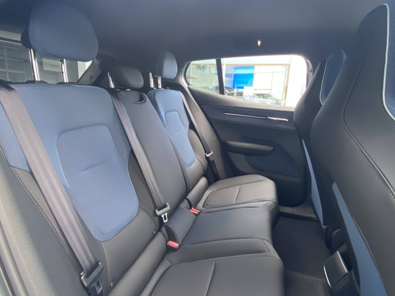 2 cartes de verrouillage et déverrouillage du véhicule / 2 prises usb type-c aux places ar / 2 prises usb type-c av / accès au service d'assistance volvo via bouton dédié dans le plafonnier / accès au service d'urgence volvo via bouton sos dans le plafonnier / airbag passager désactivable avec témoin d'indication (on/off) / airbags latéraux droit et gauche pour le conducteur et droit pour le passager av / alerte vigilance conducteur (driver alert control) informe le conducteur lorsque le système remarque qu'il est nécessaire de porter plus d'attention sur le trafic ou que la conduite semble anormale. si le conducteur ne réagit pas, alors le véhicule pourra effectuer un arrêt de sécurité / application volvo ex30 sur smartphone (ios et android) / assistance à l'anticipation et à l'atténuation des collisions avec le freinage et la direction véhicule circulant avec écart de vitesse jusqu'à 60 km/h. détection des piétons, cyclistes, scooters. freinage en cas d'inattention et arrêt en toute sécurité en fonction de la compréhension de l'état du conducteur / avertisseur sonore d'approche le véhicule émettra un son subtil mais audible lorsqu'il est conduit à basse vitesse dans le but d'avertir notamment les piétons et les cyclistes. / bouton de verrouillage centralisé sur l'accoudoir central av / câble de recharge type 2, 32 a triphasé (fonctionne également en monophasé) pour borne de recharge / calandre av pleine couleur carrosserie / ceintures de sécuritéà inertie à 3 points d'ancrage (sur les 5 sièges) / chargeur embarqué puissance de charge maximale de 11 kw (courant alternatif).puissance de charge maximale de 155 kw (courant continu) / coffre sous le capot av d'une capacité de 7 litres / compartiment de rangement entre les sièges av / conduite à une pédale ou one pedal drive une seule pédale vous permet de profiter d'une expérience de conduite encore plus intuitive (fonction désactivable). / contrôle de la transmission en descente hdc / coques de rétroviseurs noir / déclenchement automatique des feux de detresse lors d'un freinage d'urgence / direction assistée électrique asservie à la vitesse / eclairage d'ambiance personnalisable selon 5 ambiances - forêt, crépuscule, aurores boréales, archipel, Été / eclairage d'approche et d'accompagnement / en cas de collision, envoi automatique d'une alerte au service d'urgence volvo si un coussin gonflable ou un prétensionneur de ceinture de sécurité est déclenché lors d'une collision, une alerte est automatiquement envoyée au service d'urgence volvo. valable pendant 10 ans. / espace de rangement sous l'écran central / espaces de rangement dans les contre-portes / espaces de rangement entre les deux sièges av / fonction climatisation de l'habitacle moteur coupé / fonctions d'intervention sur la direction aide au maintien dans la voie de 65 à 140 km/h, détection du risque de collision frontale en cas de chevauchement de voie du véhicule venant en sens inverse, aide à diriger la voiture dans une trajectoire qui réduira le risque de sortie de route et si cela ne suffit pas, le système peut également intervenir en freinant pour réduire la vitesse / frein de parking électronique automatique avec fonction auto hold (désactivable) / freins à disques 17" ventilés à l'av et à l'ar / grand écran central flottant 12,3 / incrustations denim recyclé / indicateur de perte de pression des pneus / jantes alliage 19" 5 branches noir / diamant avec inserts aérodynamiques 245/45 r19 / kit anticrevaison / miroirs de courtoisie, spots de lecture à l'av et éclairage dans le coffre / mise à jour du système à distance (over the air ou ota) / ouverture des portes sans clé keyless entry / pare-brise en verre feuilleté et colonne de direction rétractable en cas de choc / parties inférieures des vitres noir brillant / phares led avec feux de jour design marteau de thor et feux de route adaptatifs / pilot assist lecture des marquages au sol, observation de la circulation et des autres véhicules, assistance avec adaptation de la vitesse, action sur la direction afin de maintenir le véhicule centré dans sa voie avec un maintien de la distance de sécurité avec le véhicule qui précède, assistance lorsqu'un changement de voie est nécessaire, peut être activé jusqu'à 130 km/h / plancher de coffre amovible / pompe à chaleur permet principalement d'économiser la puissance de la batterie. / port de recharge sur l'aile ar gauche et connecteur charge rapide / porte-gobelets av / pré-câblage électrique pour le crochet d'attelage / préparation pour fixations isofix (places latérales de la deuxième rangée de sièges) / prise 12 v dans le coffre / rappel d'oubli de bouclage de ceinture de sécurité av et ar / réglage en hauteur manuel des ceintures av / régulateur adaptatif de vitesse et de distance acc / rétroviseur extérieur conducteur et rétroviseur intérieur électrochromes / rétroviseur intérieur jour/nuit manuel / sellerie marine / séquence lumineuse d'approche / sièges conducteur et passager avec réglage manuel de la hauteur / sièges conducteur et passager avec réglage manuel de l'inclinaison du dossier et de l'assise / sièges conducteur et passager avec supports lombaires fixes / sonde de température extérieure et horloge / système audio premium signé harman kardon les 9 haut-parleurs, dont une iconique barre de son en haut de la console centrale regroupant 5 haut-parleurs et un subwoofer, complétée par 2 haut-parleurs dans les portes ar et un subwoofer dans le coffre, s'intègrent harmonieusement à l'habitacle pour vous envelopper d'un son 5.1 cristallin, riche et réaliste, qui restitue exactement l'intention de l'artiste. puissance totale 1040 watts. / système d'aide à la vigilance (ou driver awareness) surveillance anti-angle mort blis, assistance au changement de file, alerte trafic en marche ar, alerte collision ar avec action corrective, al