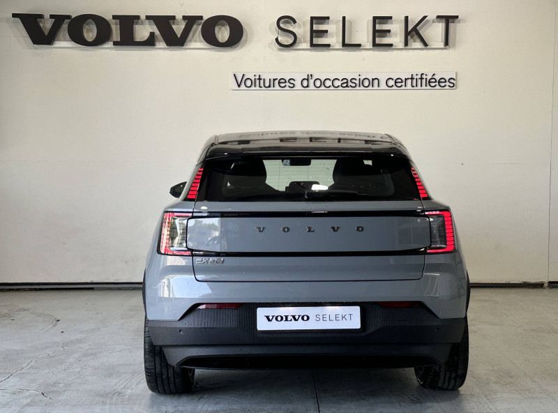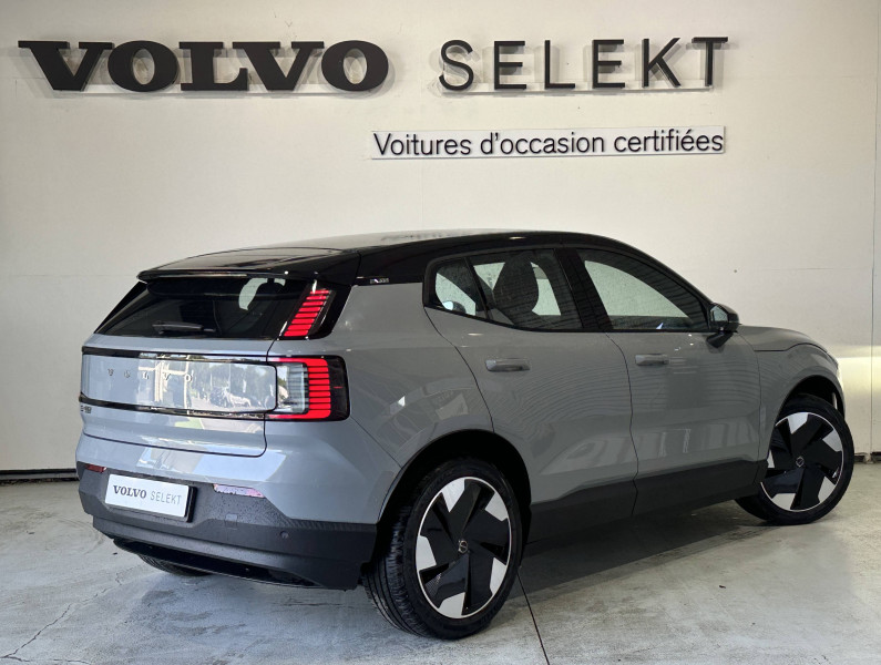 2 cartes de verrouillage et déverrouillage du véhicule / 2 prises usb type-c aux places ar / 2 prises usb type-c av / accès au service d'assistance volvo via bouton dédié dans le plafonnier / accès au service d'urgence volvo via bouton sos dans le plafonnier / airbag passager désactivable avec témoin d'indication (on/off) / airbags latéraux droit et gauche pour le conducteur et droit pour le passager av / alerte vigilance conducteur (driver alert control) informe le conducteur lorsque le système remarque qu'il est nécessaire de porter plus d'attention sur le trafic ou que la conduite semble anormale. si le conducteur ne réagit pas, alors le véhicule pourra effectuer un arrêt de sécurité / application volvo ex30 sur smartphone (ios et android) / assistance à l'anticipation et à l'atténuation des collisions avec le freinage et la direction véhicule circulant avec écart de vitesse jusqu'à 60 km/h. détection des piétons, cyclistes, scooters. freinage en cas d'inattention et arrêt en toute sécurité en fonction de la compréhension de l'état du conducteur / avertisseur sonore d'approche le véhicule émettra un son subtil mais audible lorsqu'il est conduit à basse vitesse dans le but d'avertir notamment les piétons et les cyclistes. / bouton de verrouillage centralisé sur l'accoudoir central av / câble de recharge type 2, 32 a triphasé (fonctionne également en monophasé) pour borne de recharge / calandre av pleine couleur carrosserie / ceintures de sécuritéà inertie à 3 points d'ancrage (sur les 5 sièges) / chargeur embarqué puissance de charge maximale de 11 kw (courant alternatif).puissance de charge maximale de 155 kw (courant continu) / coffre sous le capot av d'une capacité de 7 litres / compartiment de rangement entre les sièges av / conduite à une pédale ou one pedal drive une seule pédale vous permet de profiter d'une expérience de conduite encore plus intuitive (fonction désactivable). / contrôle de la transmission en descente hdc / coques de rétroviseurs noir laqué / déclenchement automatique des feux de detresse lors d'un freinage d'urgence / direction assistée électrique asservie à la vitesse / eclairage d'ambiance personnalisable selon 5 ambiances - forêt, crépuscule, aurores boréales, archipel, Été / eclairage d'approche et d'accompagnement / en cas de collision, envoi automatique d'une alerte au service d'urgence volvo si un coussin gonflable ou un prétensionneur de ceinture de sécurité est déclenché lors d'une collision, une alerte est automatiquement envoyée au service d'urgence volvo. valable pendant 10 ans. / espace de rangement sous l'écran central / espaces de rangement dans les contre-portes / espaces de rangement entre les deux sièges av / fonction climatisation de l'habitacle moteur coupé / fonctions d'intervention sur la direction aide au maintien dans la voie de 65 à 140 km/h, détection du risque de collision frontale en cas de chevauchement de voie du véhicule venant en sens inverse, aide à diriger la voiture dans une trajectoire qui réduira le risque de sortie de route et si cela ne suffit pas, le système peut également intervenir en freinant pour réduire la vitesse / frein de parking électronique automatique avec fonction auto hold (désactivable) / freins à disques 17" ventilés à l'av et à l'ar / grand écran central flottant 12,3 / incrustations denim recyclé / indicateur de perte de pression des pneus / jantes alliage 19'' 5 branches noir / diamant avec inserts aérodynamiques et pneus été 245/45 r19 / kit anticrevaison / miroirs de courtoisie, spots de lecture à l'av et éclairage dans le coffre / mise à jour du système à distance (over the air ou ota) / ouverture des portes sans clé keyless entry / pare-brise en verre feuilleté et colonne de direction rétractable en cas de choc / parties inférieures des vitres noir brillant / phares led avec feux de jour design marteau de thor et feux de route adaptatifs / pilot assist lecture des marquages au sol, observation de la circulation et des autres véhicules, assistance avec adaptation de la vitesse, action sur la direction afin de maintenir le véhicule centré dans sa voie avec un maintien de la distance de sécurité avec le véhicule qui précède, assistance lorsqu'un changement de voie est nécessaire, peut être activé jusqu'à 130 km/h / plancher de coffre amovible / pompe à chaleur permet principalement d'économiser la puissance de la batterie. / port de recharge sur l'aile ar gauche et connecteur charge rapide / porte-gobelets av / pré-câblage électrique pour le crochet d'attelage / préparation pour fixations isofix (places latérales de la deuxième rangée de sièges) / prise 12 v dans le coffre / rappel d'oubli de bouclage de ceinture de sécurité av et ar / réglage en hauteur manuel des ceintures av / régulateur adaptatif de vitesse et de distance acc / rétroviseur extérieur conducteur et rétroviseur intérieur électrochromes / rétroviseur intérieur jour/nuit manuel / rétroviseurs extérieurs sans contours couleur carrosserie avec partie inférieure noir / sellerie marine / séquence lumineuse d'approche / sièges conducteur et passager avec réglage manuel de l'inclinaison du dossier et de l'assise / sièges conducteur et passager avec supports lombaires fixes / sonde de température extérieure et horloge / système audio premium signé harman kardon les 9 haut-parleurs, dont une iconique barre de son en haut de la console centrale regroupant 5 haut-parleurs et un subwoofer, complétée par 2 haut-parleurs dans les portes ar et un subwoofer dans le coffre, s'intègrent harmonieusement à l'habitacle pour vous envelopper d'un son 5.1 cristallin, riche et réaliste, qui restitue exactement l'intention de l'artiste. puissance totale 1040 watts. / système d'aide à la vigilance (ou driver awareness) surveillance anti-angle mort blis, assistance au changement de file, alerte trafic en marche ar, 