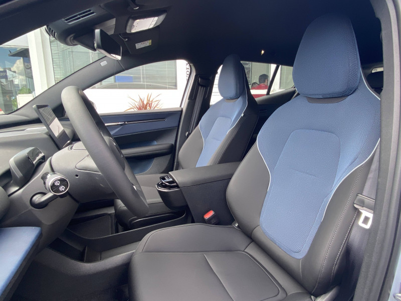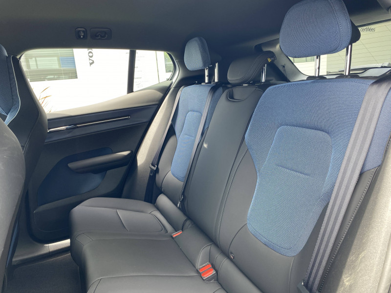 2 cartes de verrouillage et déverrouillage du véhicule / 2 prises usb type-c aux places ar / 2 prises usb type-c av / accès au service d'assistance volvo via bouton dédié dans le plafonnier / accès au service d'urgence volvo via bouton sos dans le plafonnier / airbag passager désactivable avec témoin d'indication (on/off) / airbags latéraux droit et gauche pour le conducteur et droit pour le passager av / alerte vigilance conducteur (driver alert control) informe le conducteur lorsque le système remarque qu'il est nécessaire de porter plus d'attention sur le trafic ou que la conduite semble anormale. si le conducteur ne réagit pas, alors le véhicule pourra effectuer un arrêt de sécurité / application volvo ex30 sur smartphone (ios et android) / assistance à l'anticipation et à l'atténuation des collisions avec le freinage et la direction véhicule circulant avec écart de vitesse jusqu'à 60 km/h. détection des piétons, cyclistes, scooters. freinage en cas d'inattention et arrêt en toute sécurité en fonction de la compréhension de l'état du conducteur / avertisseur sonore d'approche le véhicule émettra un son subtil mais audible lorsqu'il est conduit à basse vitesse dans le but d'avertir notamment les piétons et les cyclistes. / bouton de verrouillage centralisé sur l'accoudoir central av / câble de recharge type 2, 32 a triphasé (fonctionne également en monophasé) pour borne de recharge / calandre av pleine couleur carrosserie / ceintures de sécuritéà inertie à 3 points d'ancrage (sur les 5 sièges) / chargeur embarqué puissance de charge maximale de 11 kw (courant alternatif).puissance de charge maximale de 155 kw (courant continu) / coffre sous le capot av d'une capacité de 7 litres / compartiment de rangement entre les sièges av / conduite à une pédale ou one pedal drive une seule pédale vous permet de profiter d'une expérience de conduite encore plus intuitive (fonction désactivable). / contrôle de la transmission en descente hdc / coques de rétroviseurs noir / déclenchement automatique des feux de detresse lors d'un freinage d'urgence / direction assistée électrique asservie à la vitesse / eclairage d'ambiance personnalisable selon 5 ambiances - forêt, crépuscule, aurores boréales, archipel, Été / eclairage d'approche et d'accompagnement / en cas de collision, envoi automatique d'une alerte au service d'urgence volvo si un coussin gonflable ou un prétensionneur de ceinture de sécurité est déclenché lors d'une collision, une alerte est automatiquement envoyée au service d'urgence volvo. valable pendant 10 ans. / espace de rangement sous l'écran central / espaces de rangement dans les contre-portes / espaces de rangement entre les deux sièges av / fonction climatisation de l'habitacle moteur coupé / fonctions d'intervention sur la direction aide au maintien dans la voie de 65 à 140 km/h, détection du risque de collision frontale en cas de chevauchement de voie du véhicule venant en sens inverse, aide à diriger la voiture dans une trajectoire qui réduira le risque de sortie de route et si cela ne suffit pas, le système peut également intervenir en freinant pour réduire la vitesse / frein de parking électronique automatique avec fonction auto hold (désactivable) / freins à disques 17" à l'av et à l'ar / grand écran central flottant 12,3 / incrustations (planche de bord et portières) denim recyclé / indicateur de perte de pression des pneus / jantes alliage 19" 5 branches noir / diamant avec inserts aérodynamiques 245/45 r19 / kit anticrevaison / miroirs de courtoisie, spots de lecture à l'av et éclairage dans le coffre / ouverture des portes sans clé keyless entry / pare-brise en verre feuilleté et colonne de direction rétractable en cas de choc / parties inférieures des vitres noir brillant / phares led avec feux de jour design marteau de thor et feux de route adaptatifs / pilot assist lecture des marquages au sol, observation de la circulation et des autres véhicules, assistance avec adaptation de la vitesse, action sur la direction afin de maintenir le véhicule centré dans sa voie avec un maintien de la distance de sécurité avec le véhicule qui précède, assistance lorsqu'un changement de voie est nécessaire, peut être activé jusqu'à 130 km/h / plancher de coffre amovible / pompe à chaleur permet principalement d'économiser la puissance de la batterie. / port de recharge sur l'aile ar gauche et connecteur charge rapide / porte-gobelets av / pré-câblage électrique pour le crochet d'attelage / préparation pour fixations isofix (places latérales de la deuxième rangée de sièges) / prise 12 v dans le coffre / rappel d'oubli de bouclage de ceinture de sécurité av et ar / réglage en hauteur manuel des ceintures av / régulateur adaptatif de vitesse et de distance acc / rétroviseur extérieur conducteur et rétroviseur intérieur électrochromes / rétroviseur intérieur jour/nuit manuel / sellerie marine / séquence lumineuse d'approche / sièges conducteur et passager avec réglage manuel de la hauteur / sièges conducteur et passager avec réglage manuel de l'inclinaison du dossier et de l'assise / sièges conducteur et passager avec supports lombaires fixes / sonde de température extérieure et horloge / système audio premium signé harman kardon les 9 haut-parleurs, dont une iconique barre de son en haut de la console centrale regroupant 5 haut-parleurs et un subwoofer, complétée par 2 haut-parleurs dans les portes ar et un subwoofer dans le coffre, s'intègrent harmonieusement à l'habitacle pour vous envelopper d'un son 5.1 cristallin, riche et réaliste, qui restitue exactement l'intention de l'artiste. puissance totale 1040 watts. / système d'aide à la vigilance (ou driver awareness) surveillance anti-angle mort blis, assistance au changement de file, alerte trafic en marche ar, alerte collision ar avec action corrective, alerte sortie sécurisée à l'ouverture 