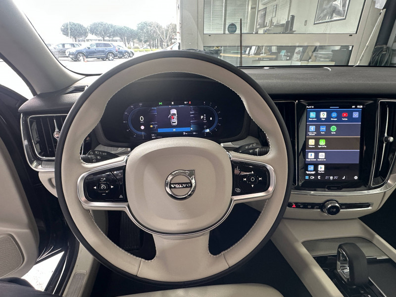 2 prises usb type-c / 4 points d'ancrage dans les panneaux latéraux du compartiment à bagages / accès au service d'assistance volvo via bouton dédié dans le plafonnier / accès au service d'urgence volvo via bouton sos dans le plafonnier / accoudoir central av avec espace de rangement et accoudoir ar avec porte-gobelets / airbag conducteur et passager à déclenchement différencié / airbag passager désactivable avec témoin d'indication (on/off) / alerte automatique au service d´urgence volvo, en cas de collision / alerte distraction trafic (ready to drive notification (adas)) / alerte vigilance conducteur (driver alert control) informe le conducteur lorsque le système remarque qu'il est nécessaire de porter plus d'attention sur le trafic ou que la conduite semble anormale. si le conducteur ne réagit pas, alors le véhicule pourra effectuer un arrêt de sécurité / application volvo cars / assise des sièges av extensible (électriquement si le siège dispose des réglages électriques) / assise et dossier des sièges en cuir / bouclier av et diffuseur ar spécifique style dark / calandre avec incrustations peintes en noir haute brillance avec maillage horizontal. tour de calandre noir laqué / ceintures de sécuritéà inertie à 3 points d'ancrage (sur les 5 sièges) / châssis dynamique / city safety (ou safety assistance), système d'anticipation de collision intelligent / climatisation automatique bi-zones, inclus un système de recirculation de l'air et un filtre à pollen / combiné d'instruments digital 12,3" personnalisable / commande vocale avancée (climatisation, médias, téléphone, emanuel utilisateur et navigation) / contour des vitres latérales noir laqué / contrôle de la transmission en descente hdc / coques de rétroviseurs noir laqué / déclenchement automatique des feux de detresse lors d'un freinage d'urgence / direction assistée électrique réglable / double sortie d'échappement dissimulée / eclairage d'approche et d'accompagnement / eclairage et spots de lecture à l'av, éclairage dans la boîte à gants et le coffre / ecran central tactile multimédia haute résolution 9", personnalisable / emblème volvo chauffant sur calandre av / filet de protection coffre/habitacle / fonction stop&start : coupe et redémarre automatiquement le moteur lorsque la voiture est à l'arrêt / freinage automatique post-collision (réduction du risque de suraccident) / freins à disques 16" ventilés à l'ar / freins à disques 17" ventilés à l'av / incrustations aluminium maillé / indicateur de perte de pression des pneus / infotainment google android (avec un volume de données illimité pour le première année) / inserts noir laqué sur le bouclier av et ar / jantes alliage 18'' 5 branches noir / diamant, 235/45 r18 / kit anticrevaison / miroirs de courtoisie éclairés, spots de lecture à l'av et à l'ar, éclairage aux pieds à l'av, dans la boîte à gants, le tunnel central et le coffre, éclairage intérieur temporisé / mise à jour du système à distance / mode de conduite personnalisable / ouverture des portes sans clé keyless entry incluant éclairage du sol dans les poignées de porte av et ouverture confort du hayon électrique (sans les mains) / pack éclairage / pare-brise en verre feuilleté et colonne de direction rétractable en cas de choc / pavillon de toit beige / pédalier standard / phares led avec correcteur dynamique de la portée et feux de jour design marteau de thor / plancher du coffre rabattable avec crochets pour sacs / pommeau de levier de vitesses gainé simili-cuir / porte-ticket de parking et d'autoroute / pré-câblage électrique pour le crochet d'attelage / préparation pour fixations isofix (places latérales de la deuxième rangée de sièges) / préparation pour l'installation d'un éthylomètre antidémarrage / prise 12 v dans le coffre / purificater d'air (cleanzone advanced) / radars de stationnement av et ar avec signal sonore et visuel / rails de toit noir laqué / rappel d'oubli de bouclage de ceinture de sécurité av et ar / rétroviseurs intérieur sans contour et extérieurs électrochromes / sécurité connectée: alerte feux de détresse et chaussée glissante (nécessite une connexion internet) / sellerie cuir avec sièges confort / seuil de coffre en aluminium / seuils de portes en aluminium à l'av badgés volvo / siège conducteur à réglages électriques avec mémoire / siège passager à réglages électriques / siège passager avec fonction mémoire / sonde de température extérieure et horloge / structure de l'habitacle renforcée à l'acier / supports lombaires des sièges av réglables électriquement (4 positions) / système audio volvo high performance / système d'adaptation intelligente de la vitesse (ou intelligent speed assist isa) / système de contrôle de la stabilité et de la traction stc / système de contrôle du freinage du véhicule vdc / système de protection anti-sortie de route / système de protection en cas de sortie de route : ceintures de sécurité actives à prétensionneurs, assise des sièges av à absorption d'énergie, pédale de frein rétractable en cas de collision frontale / système de récupération d'énergie au freinage / système de réglage en hauteur des phares / système intelligent d'informations au conducteur idis / tapis de sol textile av et ar / télécommande de verrouillage centralisé avec clé de contact intégrée, fermeture à distance des vitres et du toit ouvrant et fonction panique (déclenchement du klaxon et des feux de détresse) / trappe à carburant intelligente sans bouchon / trappe à skis / trousse de premiers secours et triangle de présignalisation / verrouillage automatique des portes à partir de 7 km/h / verrouillage de sécurité enfant automatique commandé depuis le siège conducteur (condamne aussi les fenêtres ar) / vitres av et ar électriques à impulsion (montée et descente) avec système anti-pincement / volant 3 