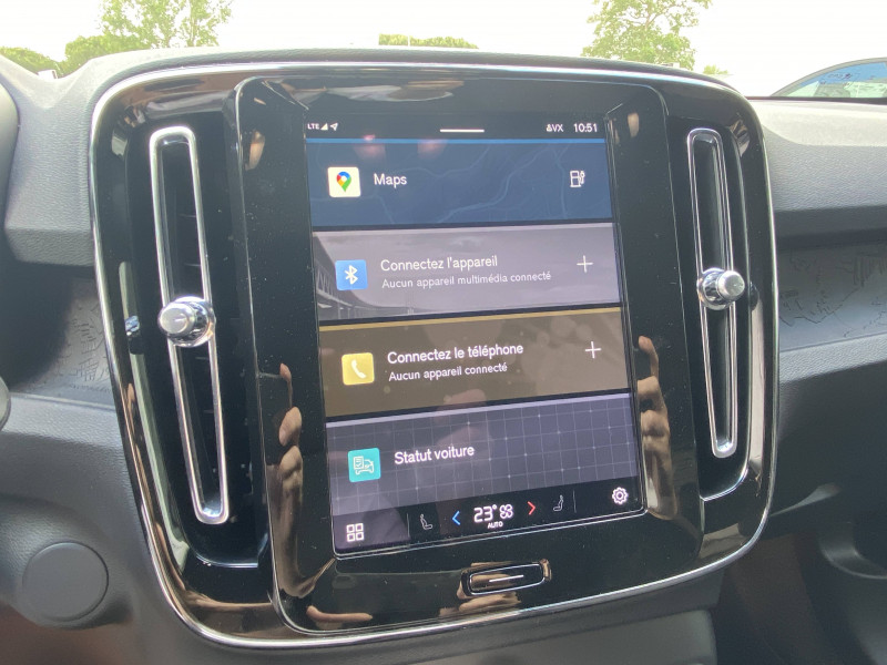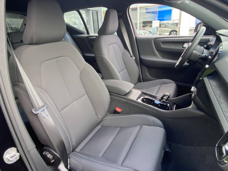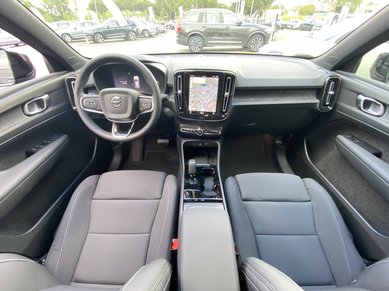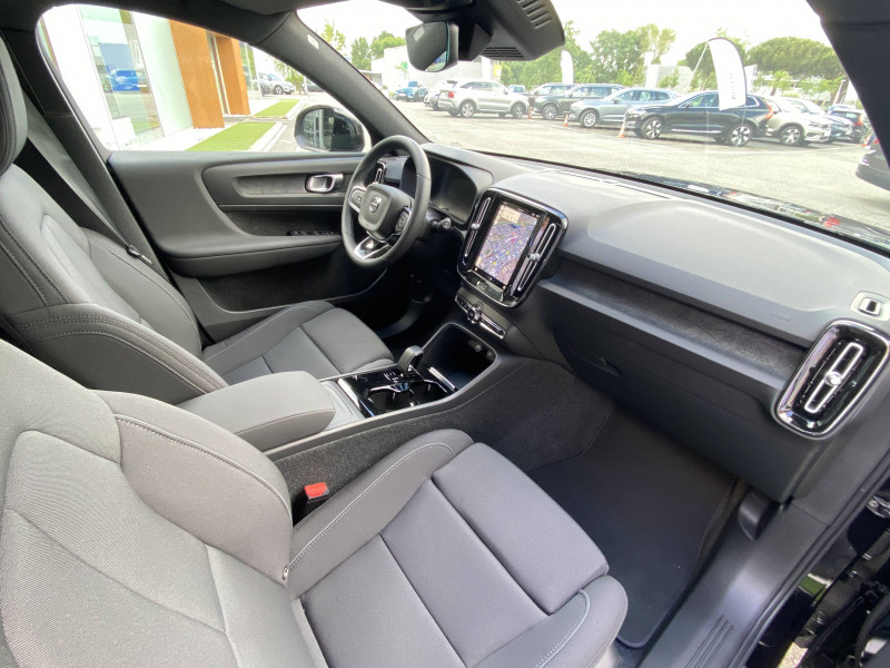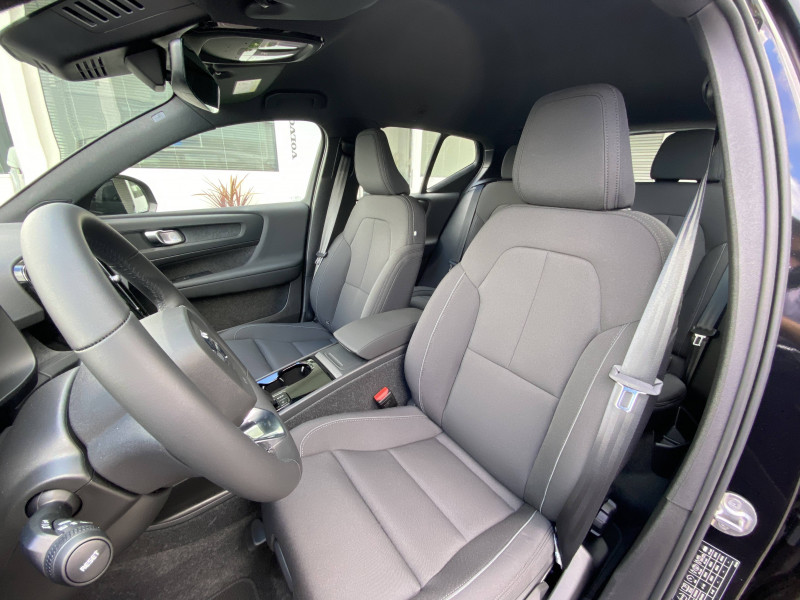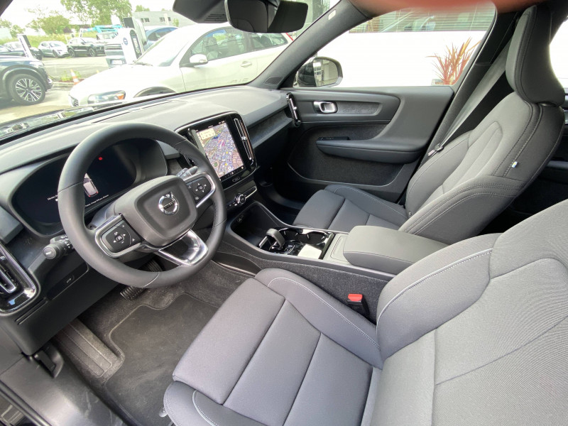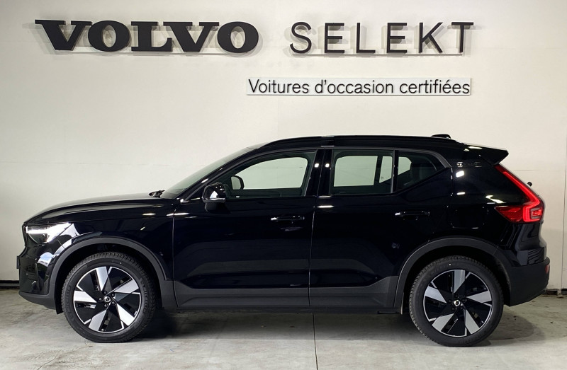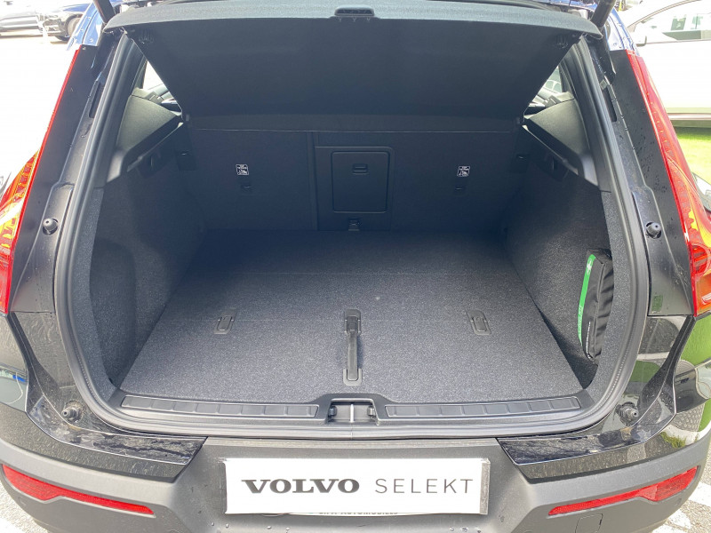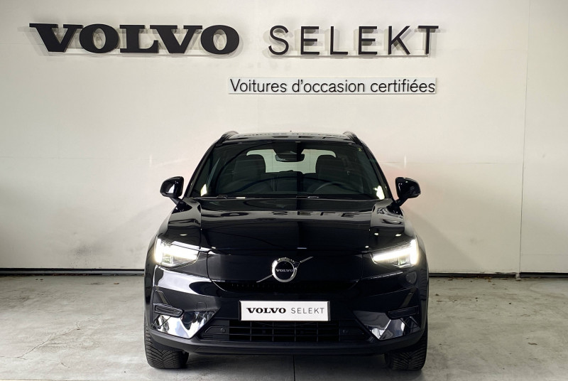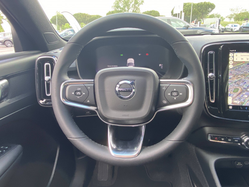 2 porte-cintres / accès au service d'assistance volvo via bouton dédié dans le plafonnier / accès au service d'urgence volvo via bouton sos dans le plafonnier / airbag passager désactivable avec témoin d'indication (on/off) / airbags conducteur et passager à déclenchement différencié / alerte vigilance conducteur / application volvo cars sur smartphone ios ou android / assise des sièges av extensible manuellement / assistance à l'évitement des piétons et des cyclistes / badge recharge sur le hayon / bas de caisse et passages de roues anthracite / câble de recharge type 2, 4.5 mètres, 32 a triphasé (fonctionne en monophasé) pour borne de recharge / calandre av pleine couleur carrosserie / ceintures de sécuritéà inertie à 3 points d'ancrage (sur les 5 sièges) / city safety, système d'anticipation de collision intelligent / cleanzone : filtre charbon de climatisation multi-actif (limite l'entrée de pollen, de particules de pollution et de mauvaises odeurs en fermant automatiquement les arrivées d'air si nécessaire) et fonction pré-ventillation / climatisation automatique bi-zone (incluant ouïes d'aération à l'ar) / coffre sous le capot av d'une capacité de 31 litres / combiné d'instruments digital 12,3" / contrôle de la transmission en descente hdc / coques de rétroviseurs noir brillant / corbeille intégrée et amovible au niveau du tunnel central av / crochet pour sacs intégréà la boîte à gants / déclenchement automatique des feux de detresse lors d'un freinage d'urgence / diffuseur ar noir laqué / direction assistée asservie à la vitesse / eclairage d'accompagnement et éclairage d'approche / ecran tactile multimédia haute résolution 9" personnalisable / envoi automatique d'une alerte au service d'urgence volvo en cas de collision / espace de rangement sous la console centrale / filet de sécurité derrière la rangée de sièges av / fonction climatisation de l'habitacle moteur coupé / freinage automatique post-collision (réduction du risque de suraccident) / frein de parking électronique automatique en fonction auto hold (désactivable) / freins à disques 18" à l'ar / gravure recharge sur les montants ar / incrustations aluminium / indicateur de perte de pression des pneus / infotainment google android services google (comprend google maps, google assistant, google play store, chargeur smartphone par induction et un volume de données illimité pour les 4 premières années) et kit mains libres bluetooth et streaming audio, mode d'emploi numérique du véhicule, réception de la radio numérique (dab+), mises à jour over the air (ota). / intellisafe assist / intellisafe surround / jantes alliage 19" 5 branches noir/diamant av 235/50 r19, ar 255/45 r19 / kit anti-crevaison / matériaux anti-allergènes dans l'habitacle (sellerie tissu, ceintures de sécurité, incrustations) / miroirs de courtoisie éclairés, spots de lecture à l'av et éclairage dans le coffre / mise à jour du système à distance / ouverture des portes sans clé keyless entry eclairage du sol dans les poignées de porte av + hayon électrique avec fonction confort (sans les mains) / pack intellisafe pro / pare-brise en verre feuilleté et colonne de direction rétractable en cas de choc / parties inférieures des vitres noir brillant / phares led avec feux de jour design, marteau de thor et feux de route adaptatifs / plancher du coffre rabattable avec crochets / pneus toutes saison / pommeau de levier de vitesse gainé de simili-cuir / port de recharge sur l'aile ar gauche et connecteur charge rapide (jusqu'à 200 kw) / porte-cartes bancaires et cartes de services intégré dans la planche de bord / pré-câblage électrique pour le crochet d'attelage / préparation pour le système isofix (places latérales de la 2ème rangée de sièges) / protections de pare-chocs av et ar noir brillant / rappel d'oubli de bouclage des ceintures de sécurité av et ar / réglage en hauteur manuel des ceintures av / rétroviseurs couleur carrosserie avec partie inférieure noir / rétroviseurs intérieur (sans contour) électrochrome / sabots de protection av et ar noir / sellerie tissu city canvas/antracite / seuil de coffre en aluminium / seuils de portes av volvo en aluminium / siège conducteur et passager avec réglage manuel de la hauteur / sièges conducteur et passaer avec réglage manuel de la longueur, de l'inclinaison du dossier et de l'assie / sièges conducteur et passager avec réglages électriques des supports lombaires / sonde de température extérieure et horloge / système audio volvo high performance avec technologie air woofer au niveau de la console centrale 250 w, 8 hp, radio numérique terrestre, prise 12 v et 2 ports usb c à l'av / système de contrôle de la stabilité et de la traction stc / système de contrôle du freinage du véhicule vdc / système de pré-conditionnement de l'habitacle (chauffage) / système de protection anti-sortie de route / système de protection collision frontale : détection du risque de collision frontale (de 65 à 140 km/h) avec action corrective sur la direction / système de protection contre le coup du lapin whips (sièges av) / système de protection contre les chocs latéraux sips / système de protection en cas de sortie de route / système de réglage en hauteur des phares / système intelligent d'information au conducteur idis / tapis de sol premium / télécommande de verrouillage centralisé avec clé de contact intégrée, fermeture à distance des vitres et du toit ouvrant et fonction panique / toit contrasté noir (sauf teinte argent aurore) / trousse de 1er secours et triangle de présignalisation / tunnel de la console centrale noir brillant / verrouillage automatique des portes à partir de 7 km/h / verrouillage de sécurité enfant manuel / vitres av et ar électriques à impulsion (montée et descente) avec système anti-pincement / volant sport avec insert aluminium